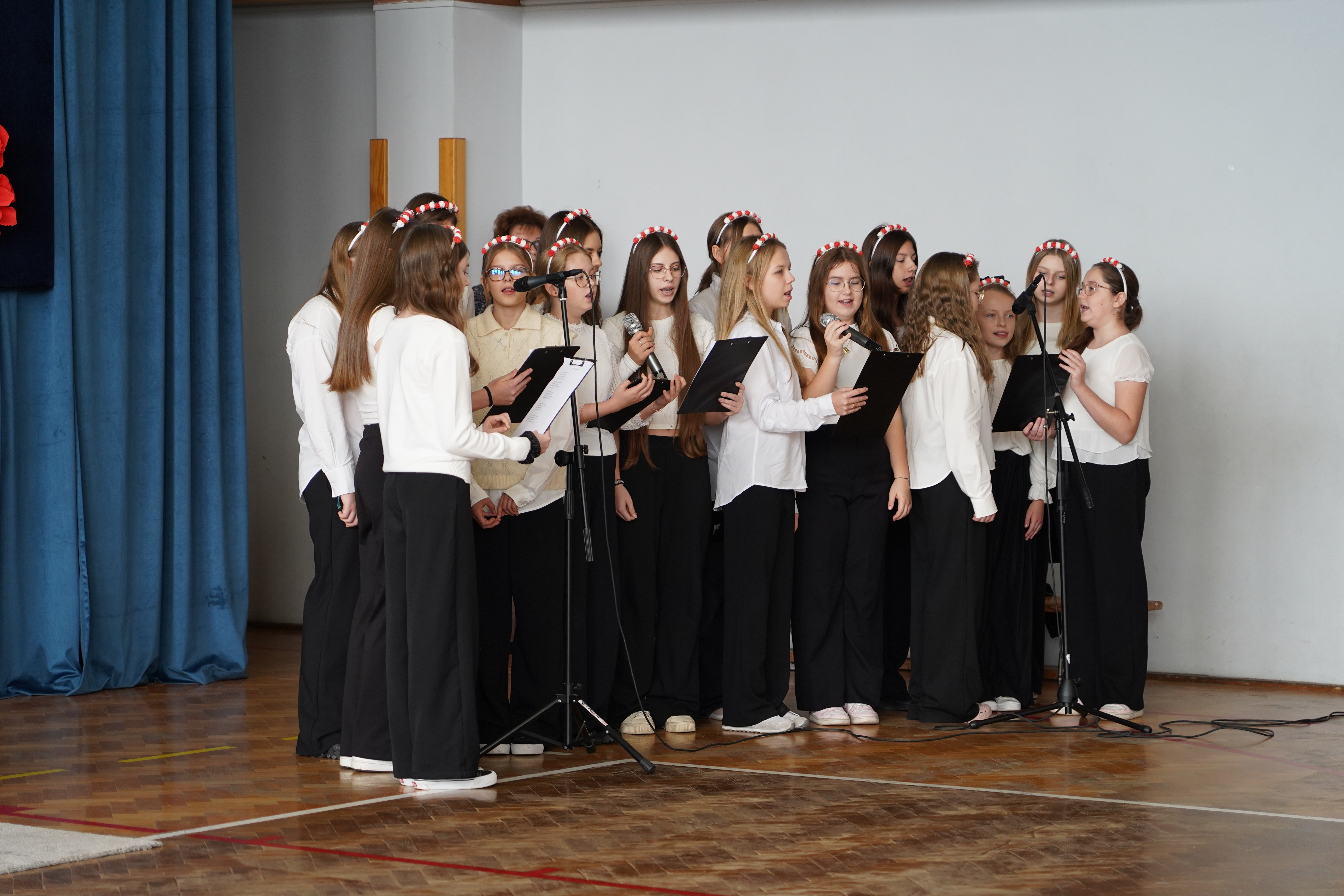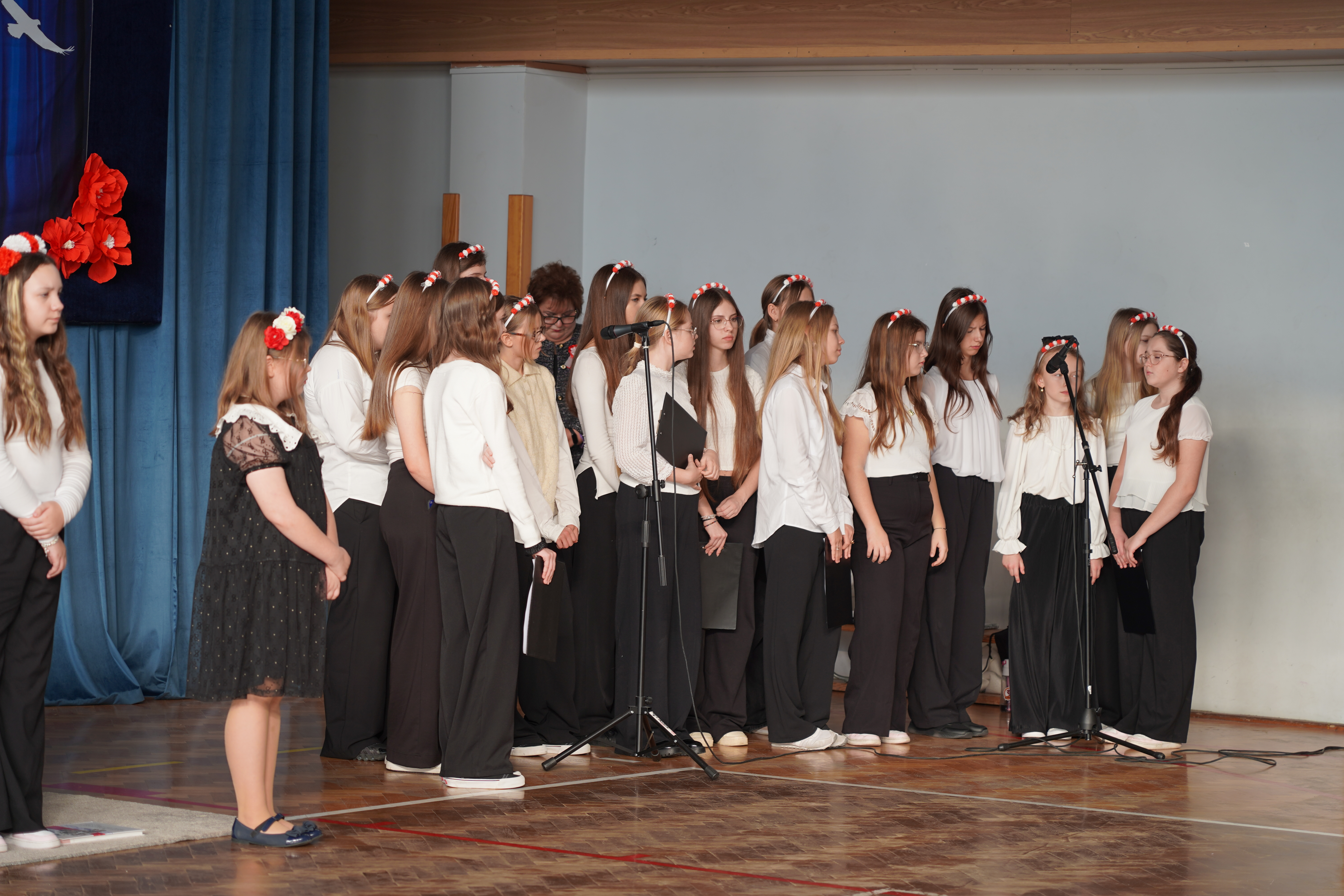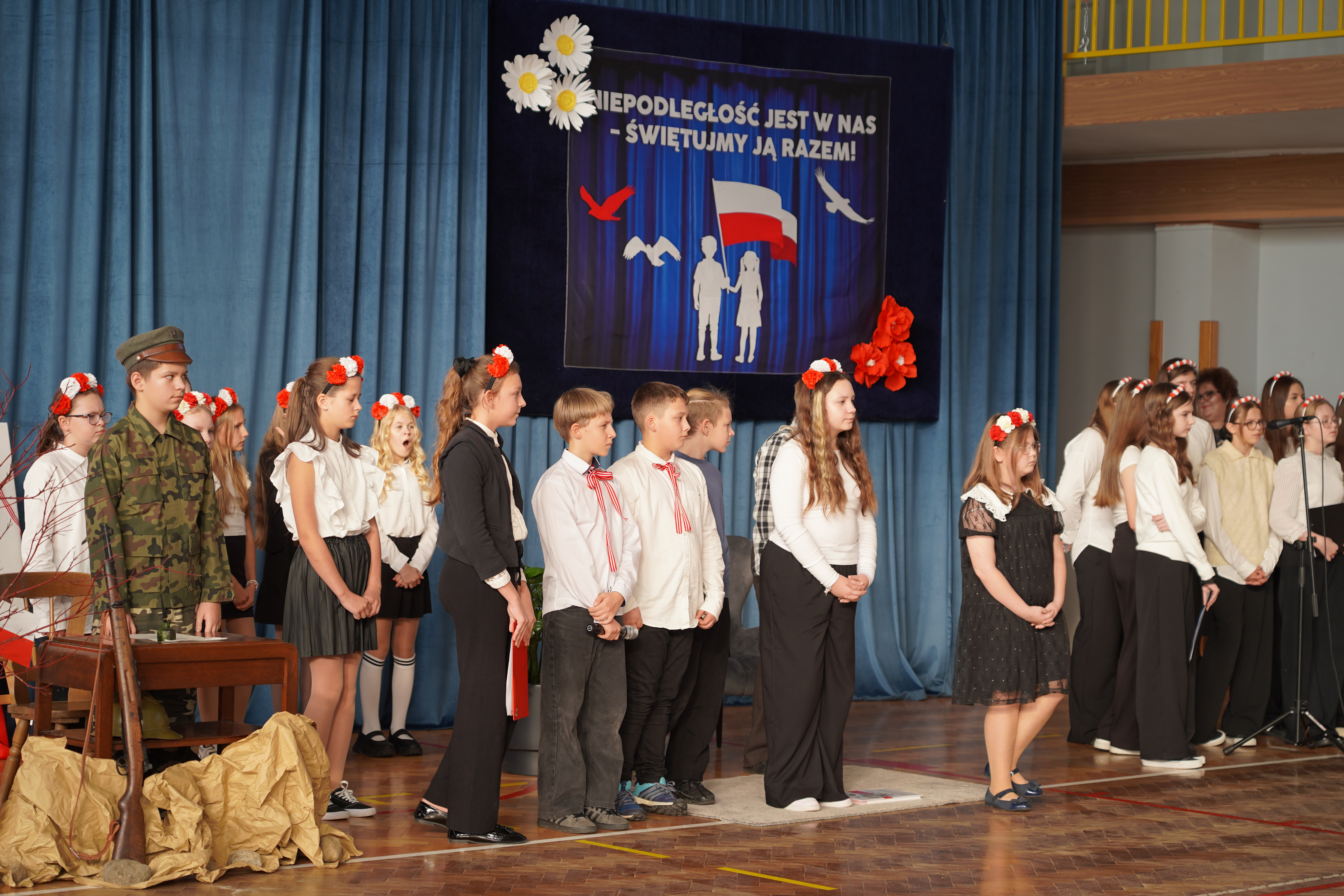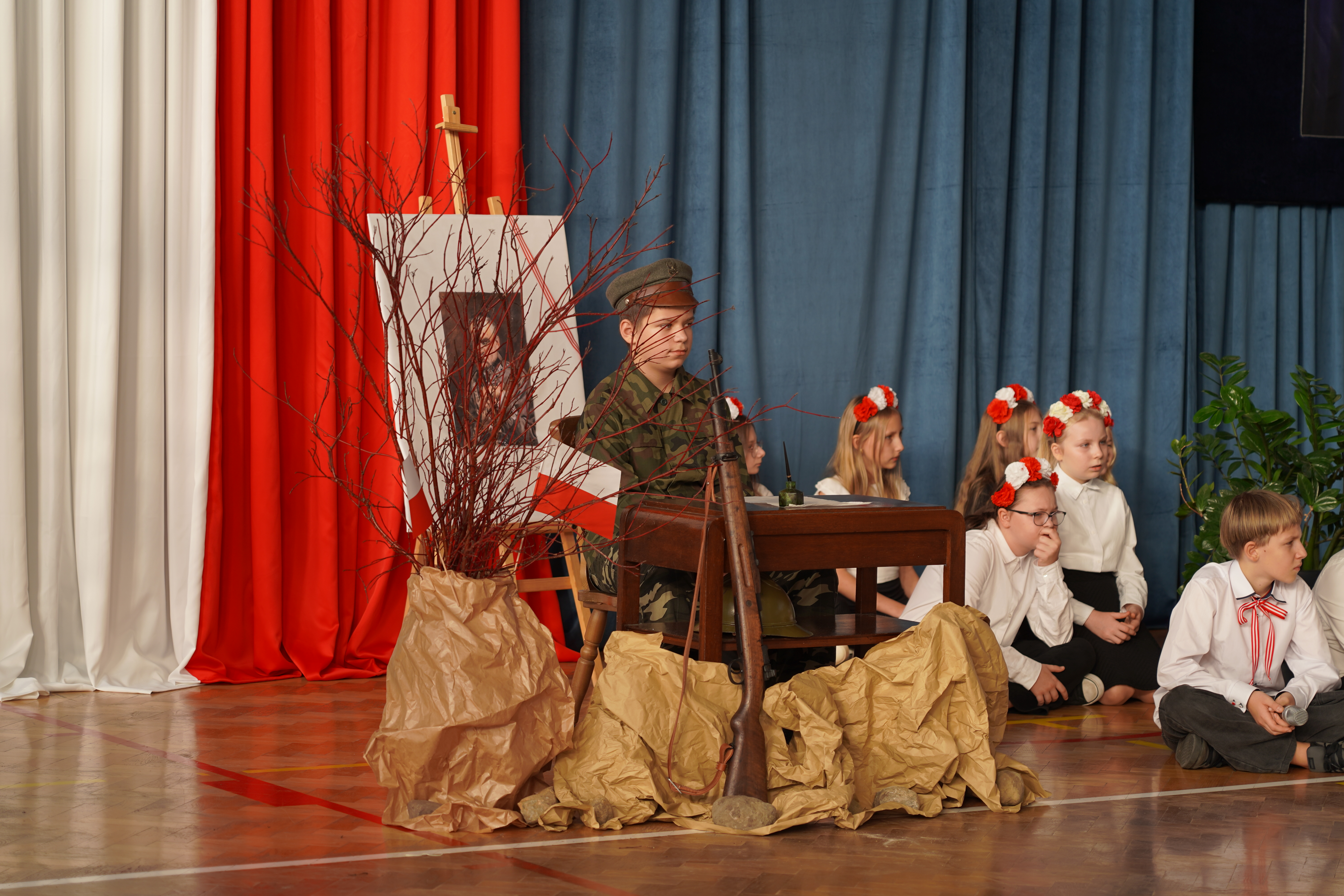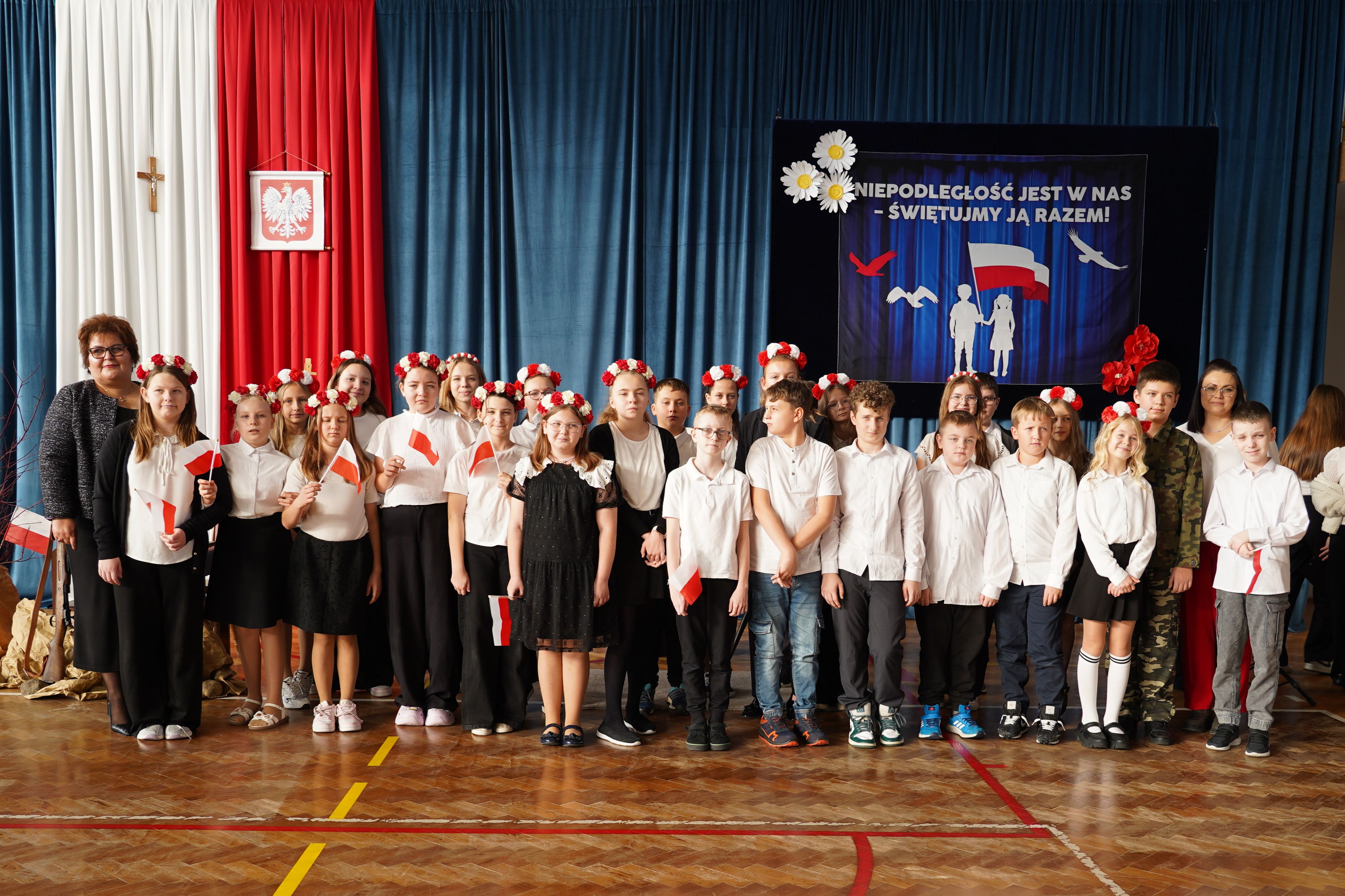 W dniu dzisiejszym w naszej szkole odbył się uroczysty apel z okazji Święta Niepodległości. Uczniowie zaprezentowali program artystyczny, w którym znalazły się wiersze, pieśni patriotyczne oraz krótkie scenki historyczne przypominające drogę Polaków do wolności. Całość wydarzenia miała podniosły i refleksyjny charakter. Apel został przygotowany przez klasy Vc i Vd wraz z wychowawczyniami - panią K. Jankowską i T.Turczyńską, a nad oprawą muzyczną czuwała pani E. Grygo. Wydarzenie było okazją do wspólnego uczczenia pamięci bohaterów oraz do przypomnienia wartości, jaką jest niepodległość.