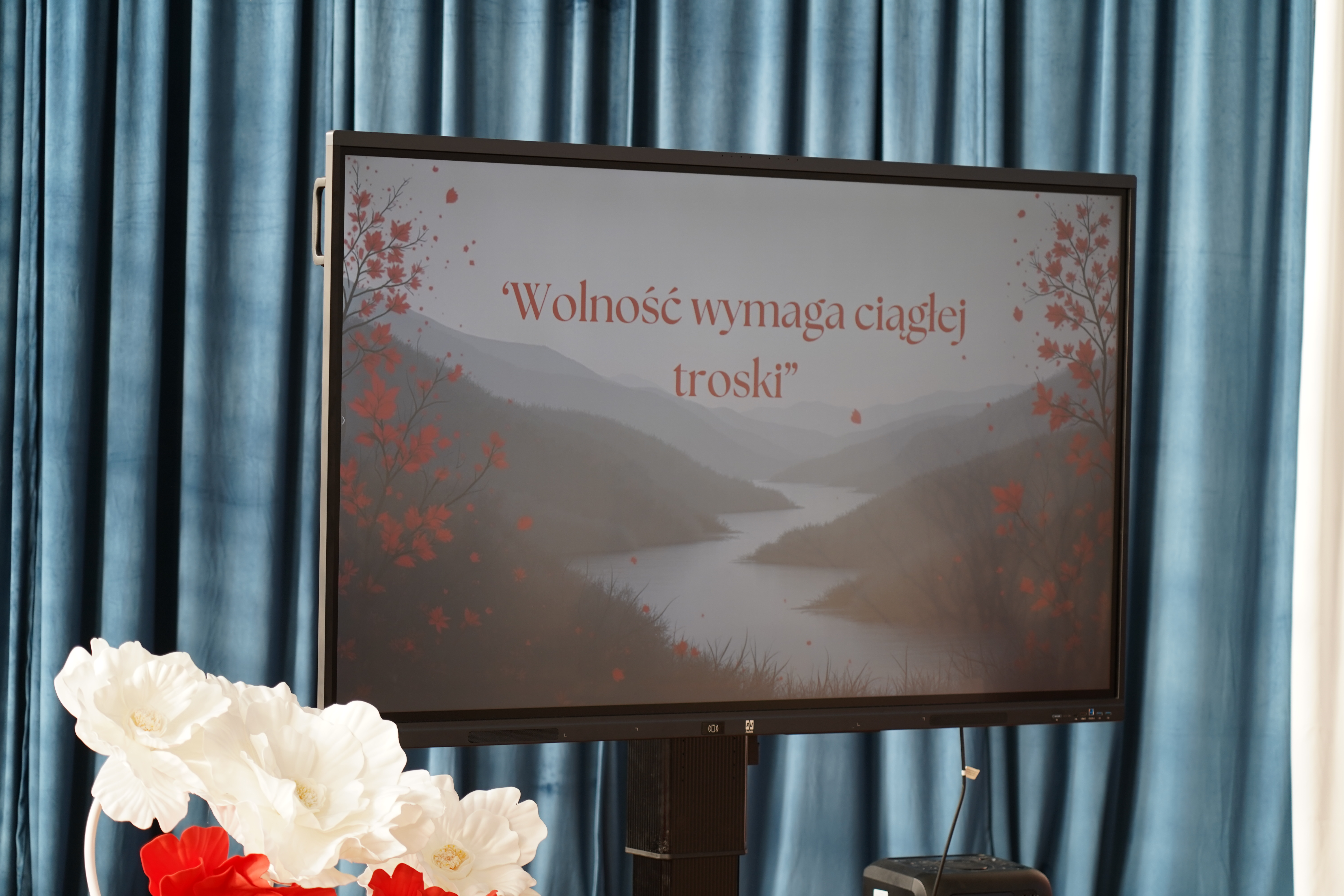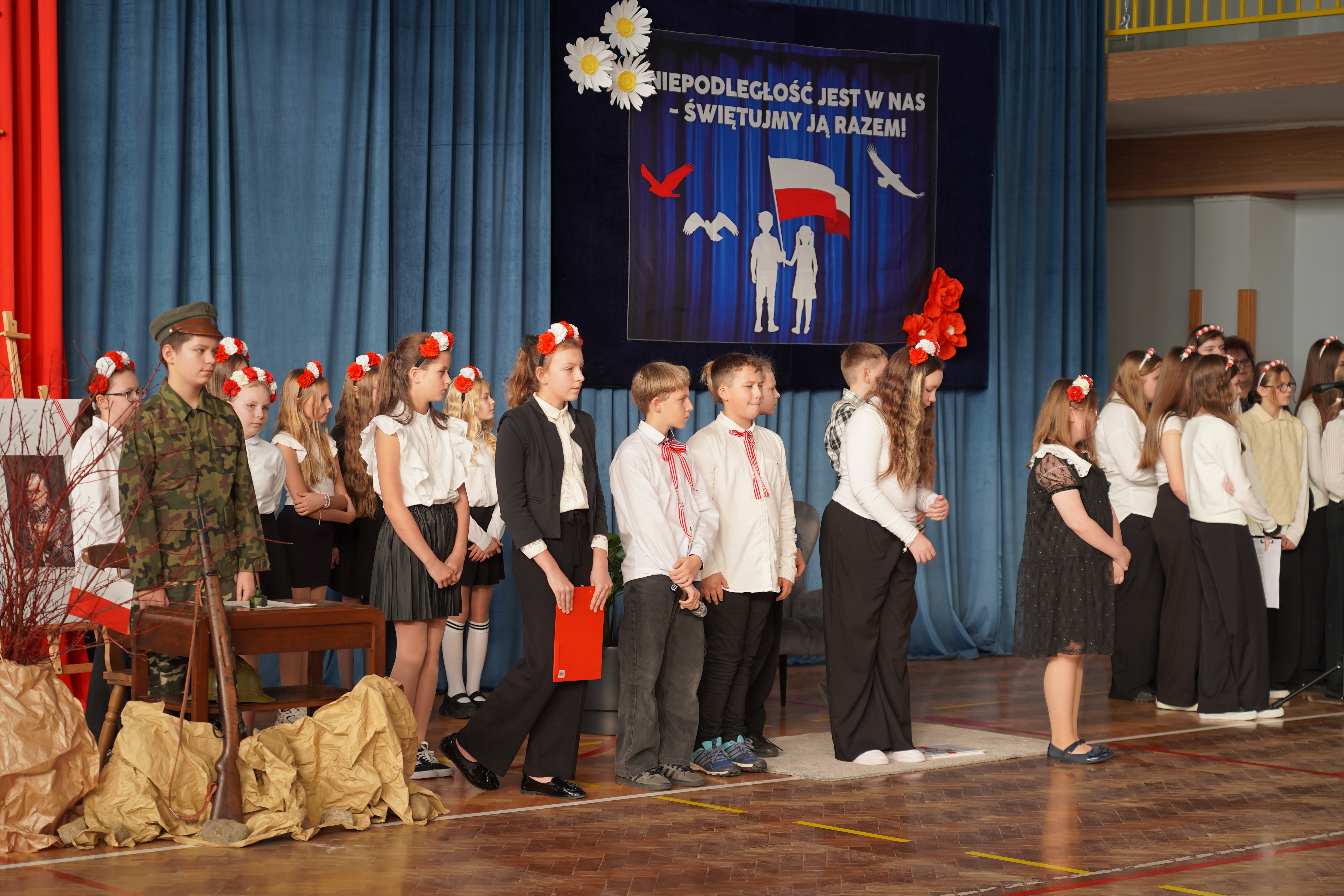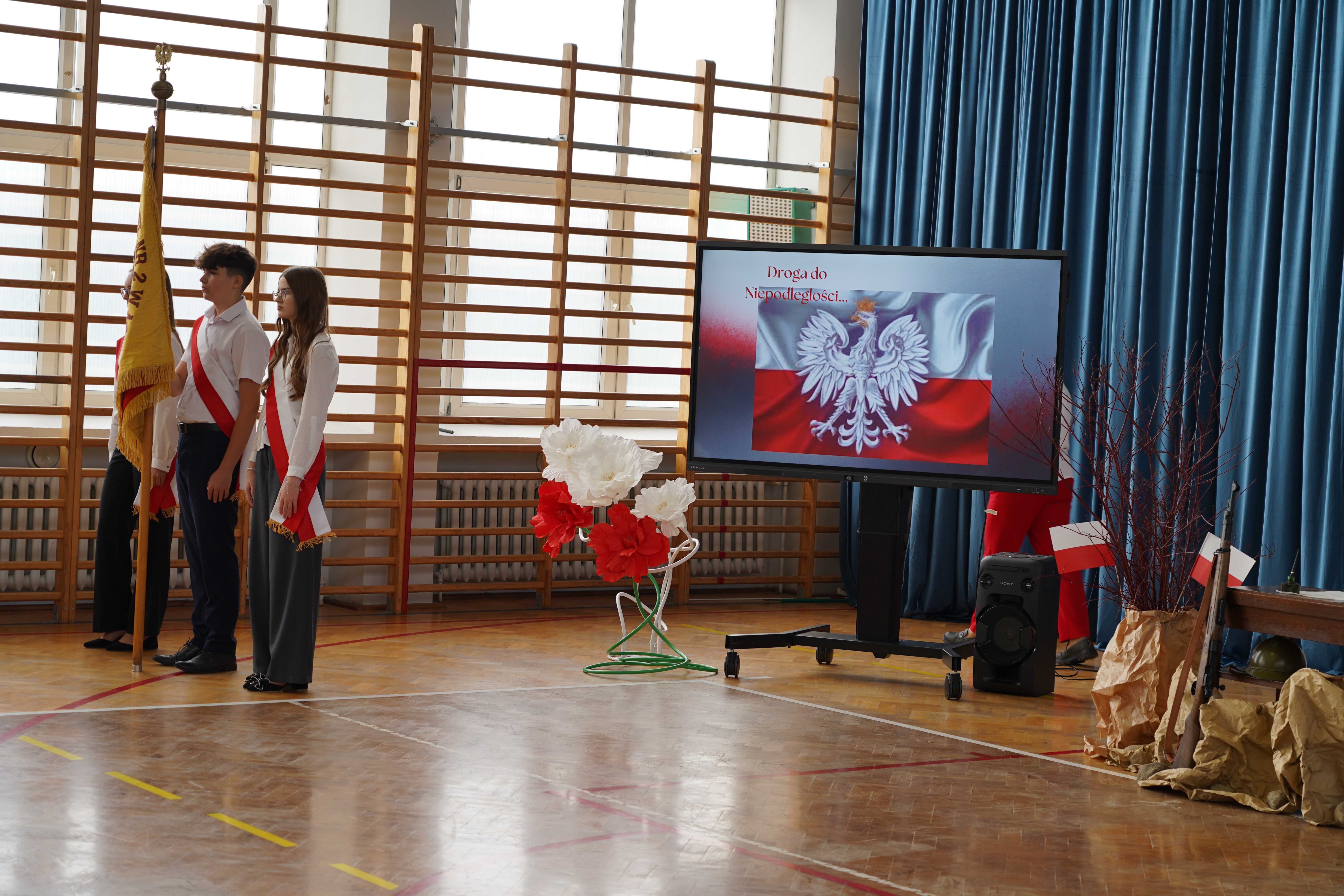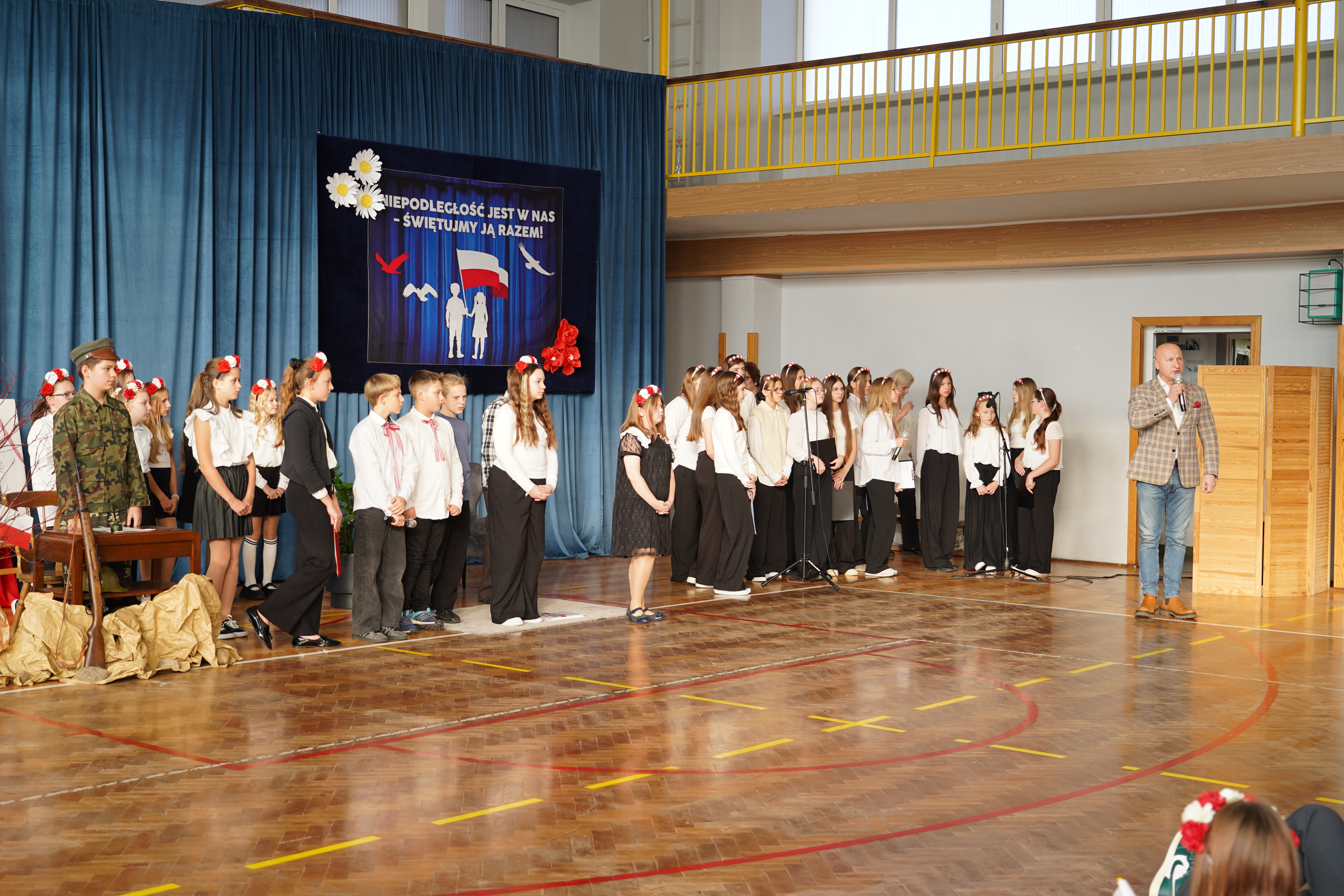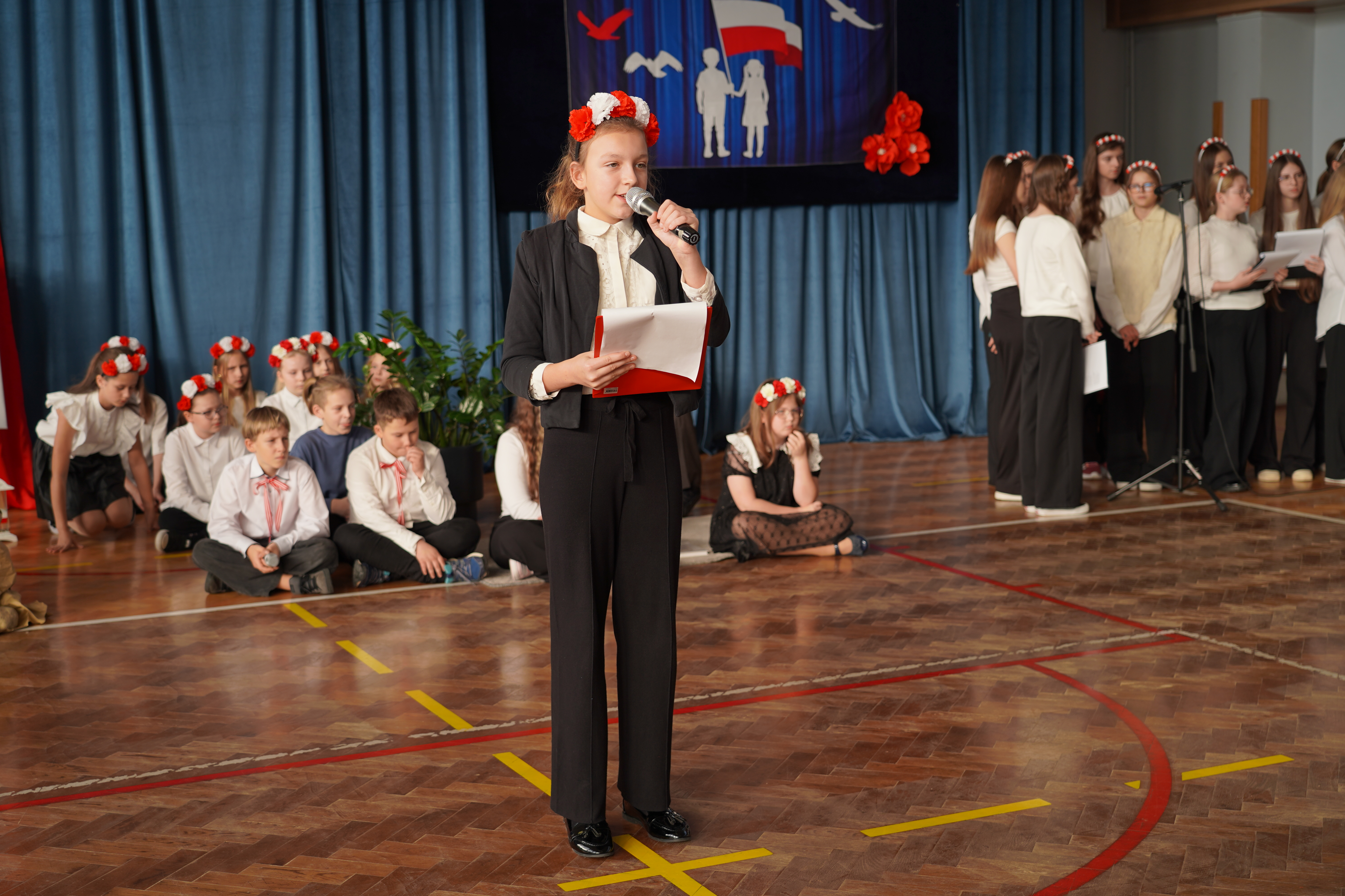 W dniu dzisiejszym w naszej szkole odbył się uroczysty apel z okazji Święta Niepodległości. Uczniowie zaprezentowali program artystyczny, w którym znalazły się wiersze, pieśni patriotyczne oraz krótkie scenki historyczne przypominające drogę Polaków do wolności. Całość wydarzenia miała podniosły i refleksyjny charakter. Apel został przygotowany przez klasy Vc i Vd wraz z wychowawczyniami - panią K. Jankowską i T.Turczyńską, a nad oprawą muzyczną czuwała pani E. Grygo. Wydarzenie było okazją do wspólnego uczczenia pamięci bohaterów oraz do przypomnienia wartości, jaką jest niepodległość.