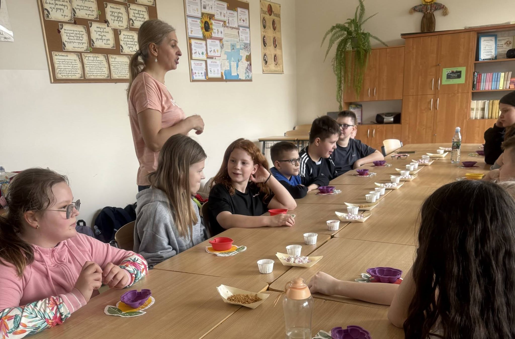 13 kwietnia świętowaliśmy w naszej szkole Dzień Czekolady, a także gościliśmy panią Barbarę Pietkiewicz - właścicielkę MonoPorcji - manufaktury, która czyni z czekolady sztukę, tworząc jedyne w Polsce czekolady biżuteryjne.