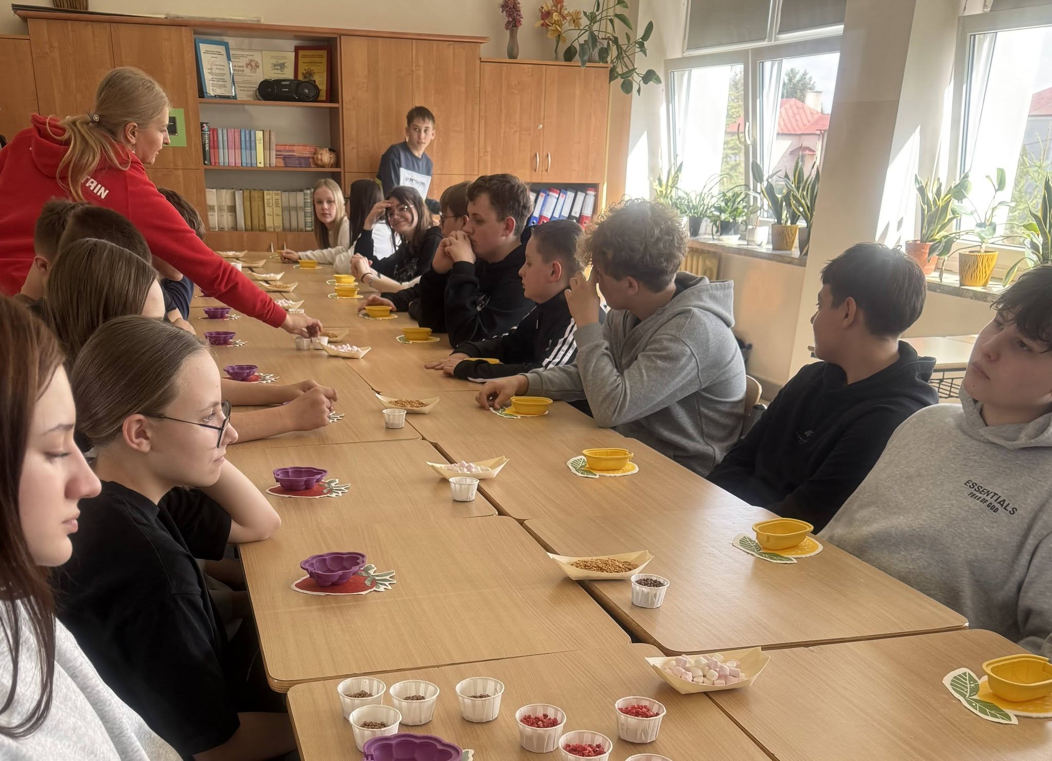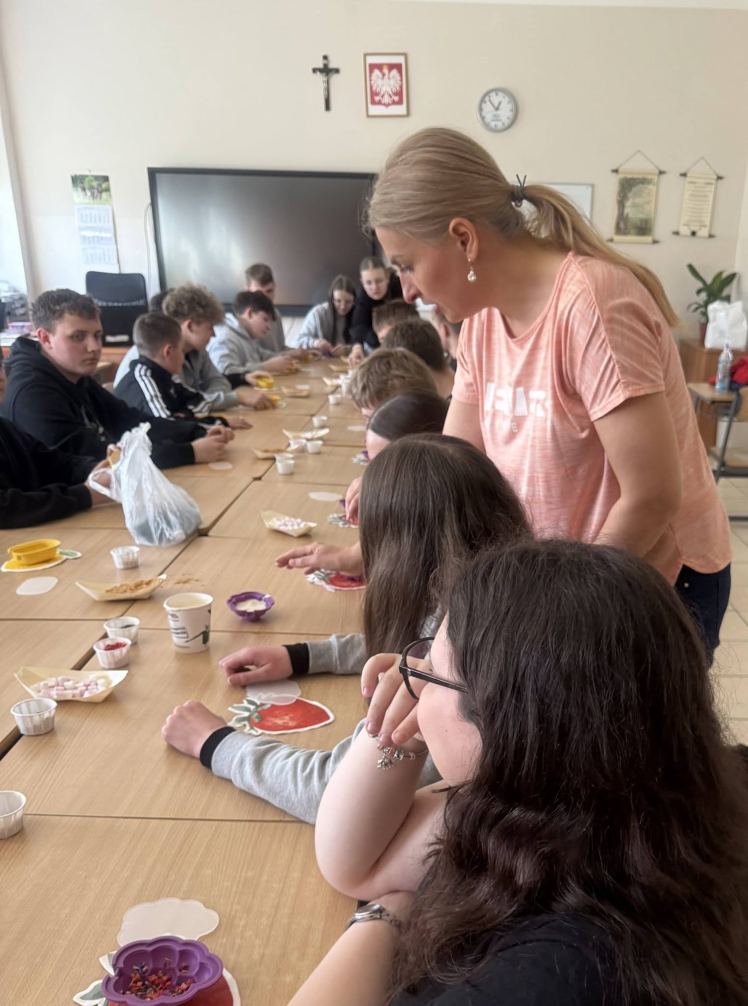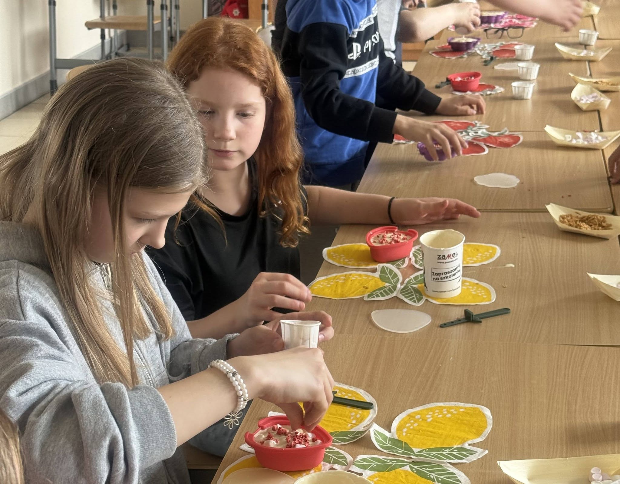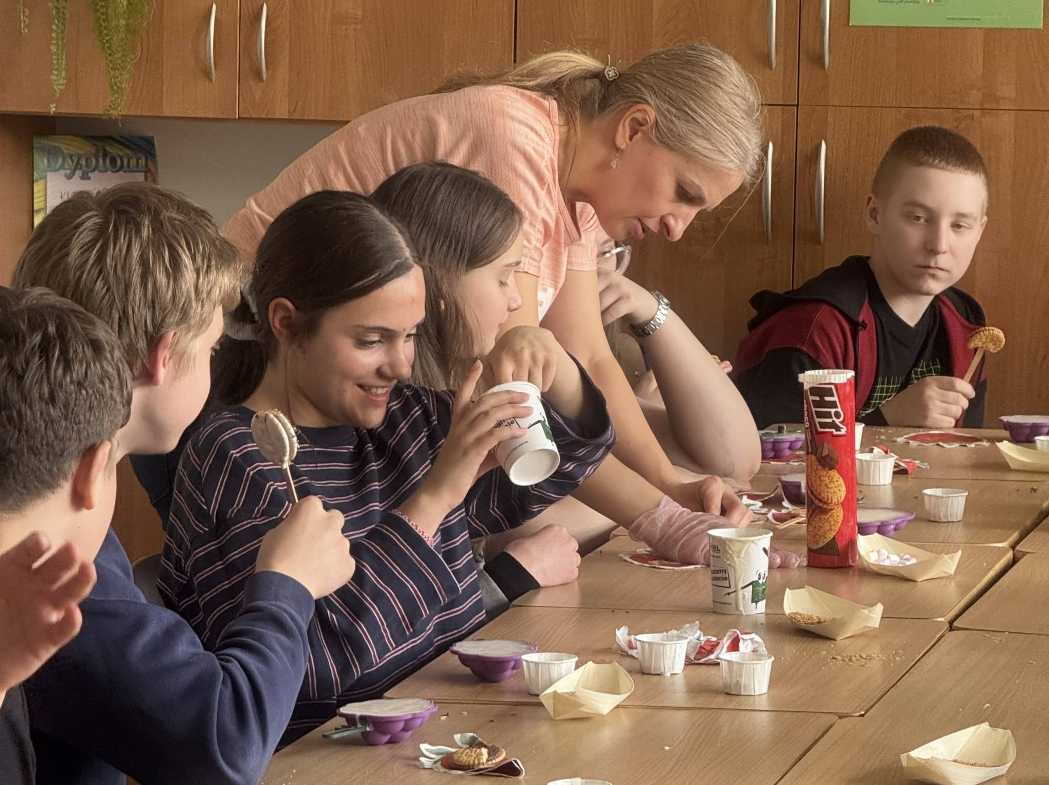 Pani Basia przeprowadziła dla nas wyjątkowe warsztaty czekoladowe, podczas których uczestnicy samodzielnie wykonali przepiękne i pyszne czekolady według własnych pomysłów. Uczestniczyli w nich uczniowie klas: 7b, 4d i 6d, którzy przy okazji zobaczyli na własne oczy, że pasja może się przerodzić w pełną satysfakcji i radości pracę.