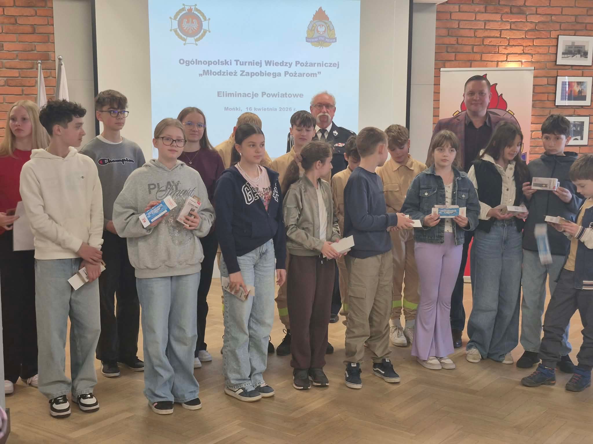 16 kwietnia 2026 r. w Komendzie Powiatowej Państwowej Straży Pożarnej w Mońkach odbyły się eliminacje powiatowe Ogólnopolskiego Turnieju Wiedzy Pożarniczej „Młodzież Zapobiega Pożarom”.