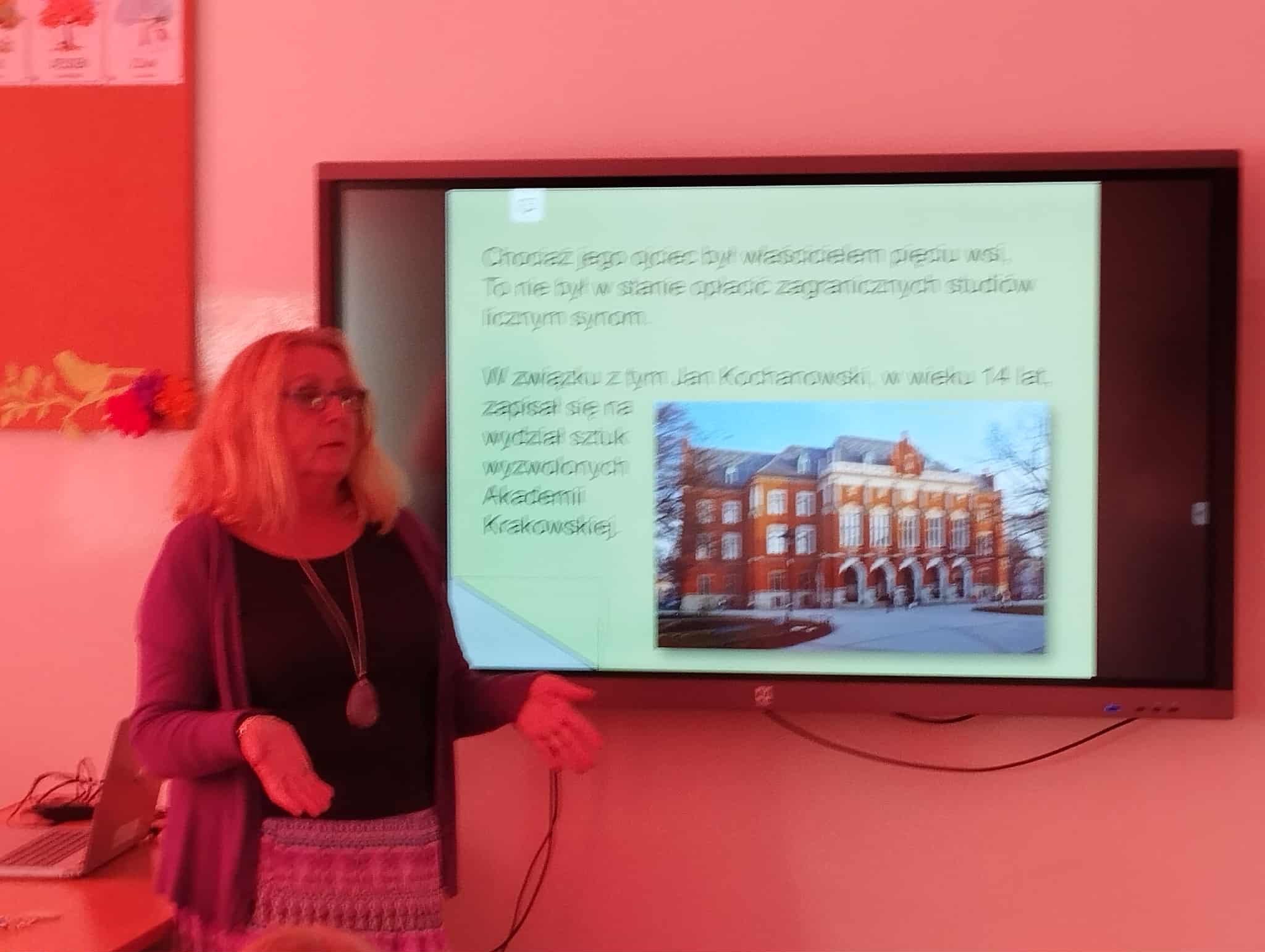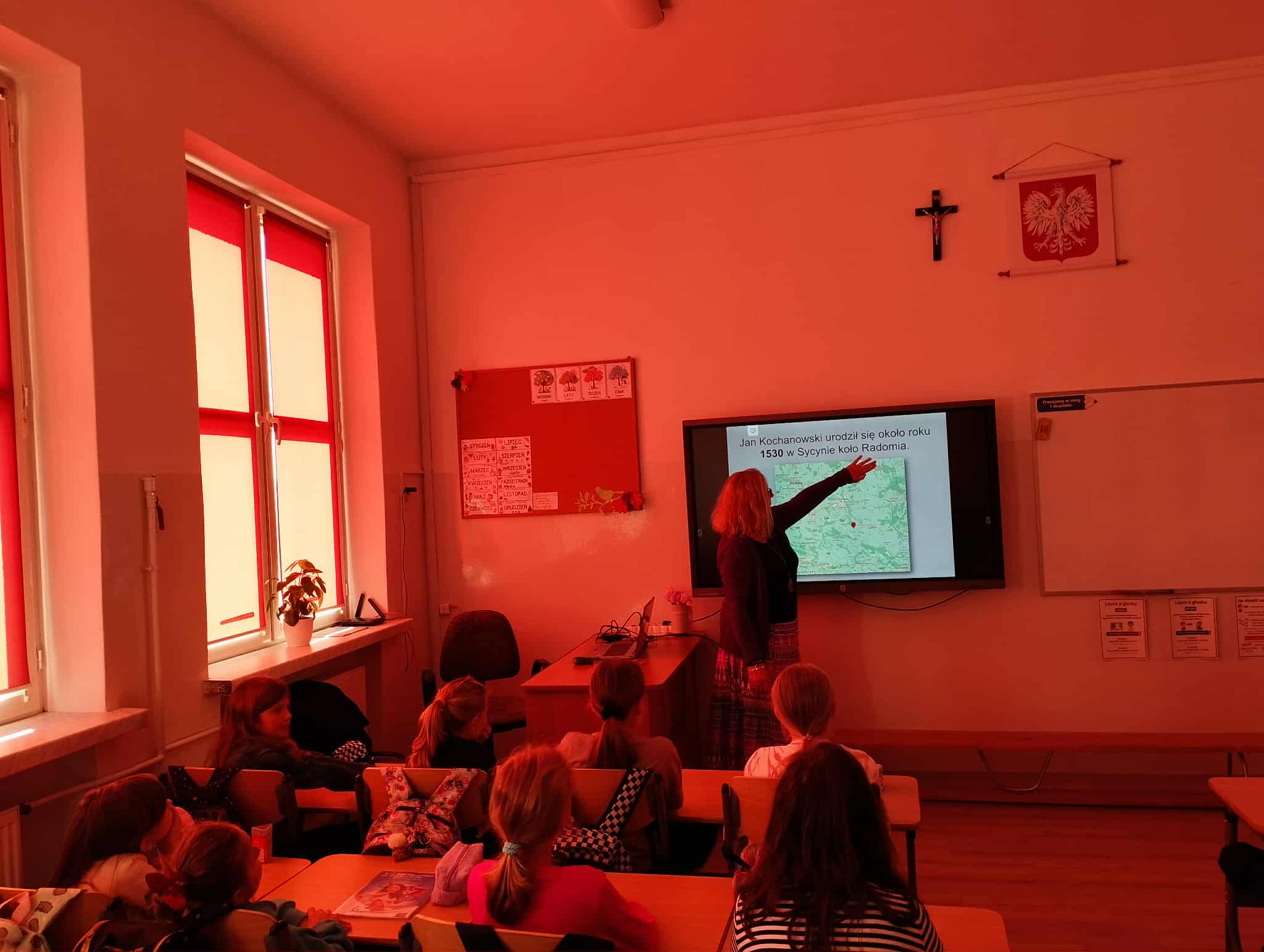 W dniu 18.09.2025 uczniowie klasy 3c uczestniczyli w lekcji bibliotecznej poświęconej życiu i twórczości Jana Kochanowskiego, Patrona naszej szkoły. Zajęcia wspomagane były prezentacją komputerową.
