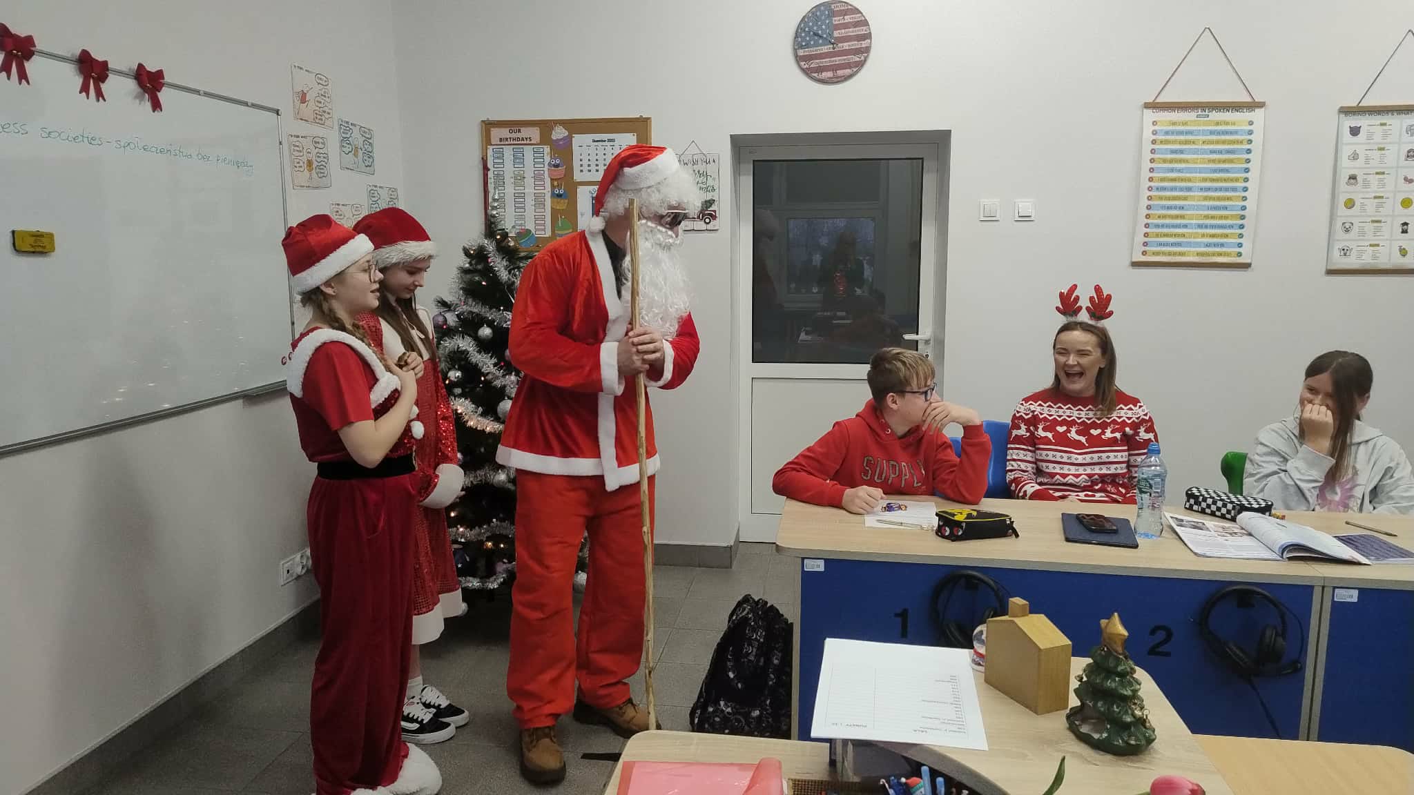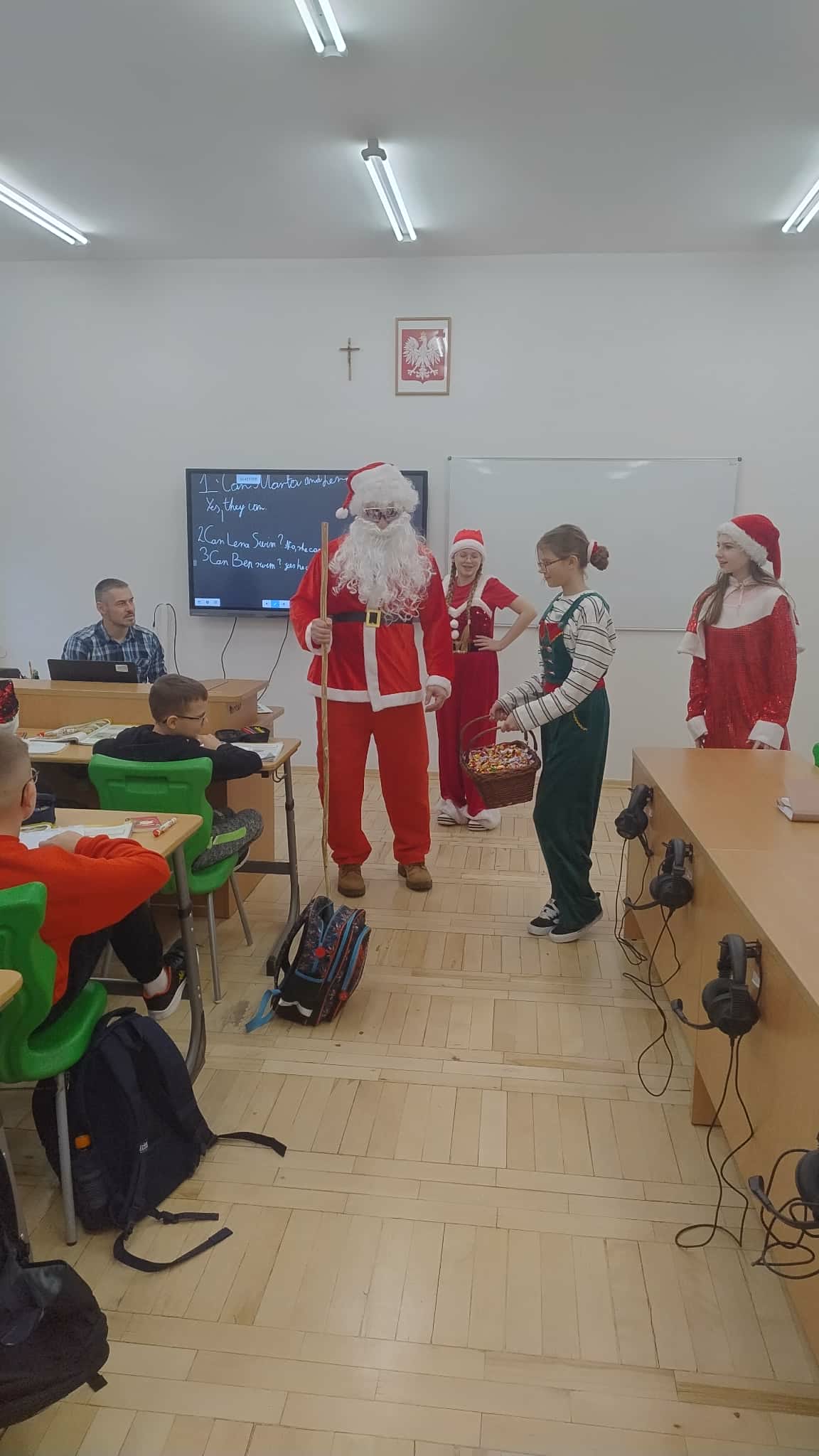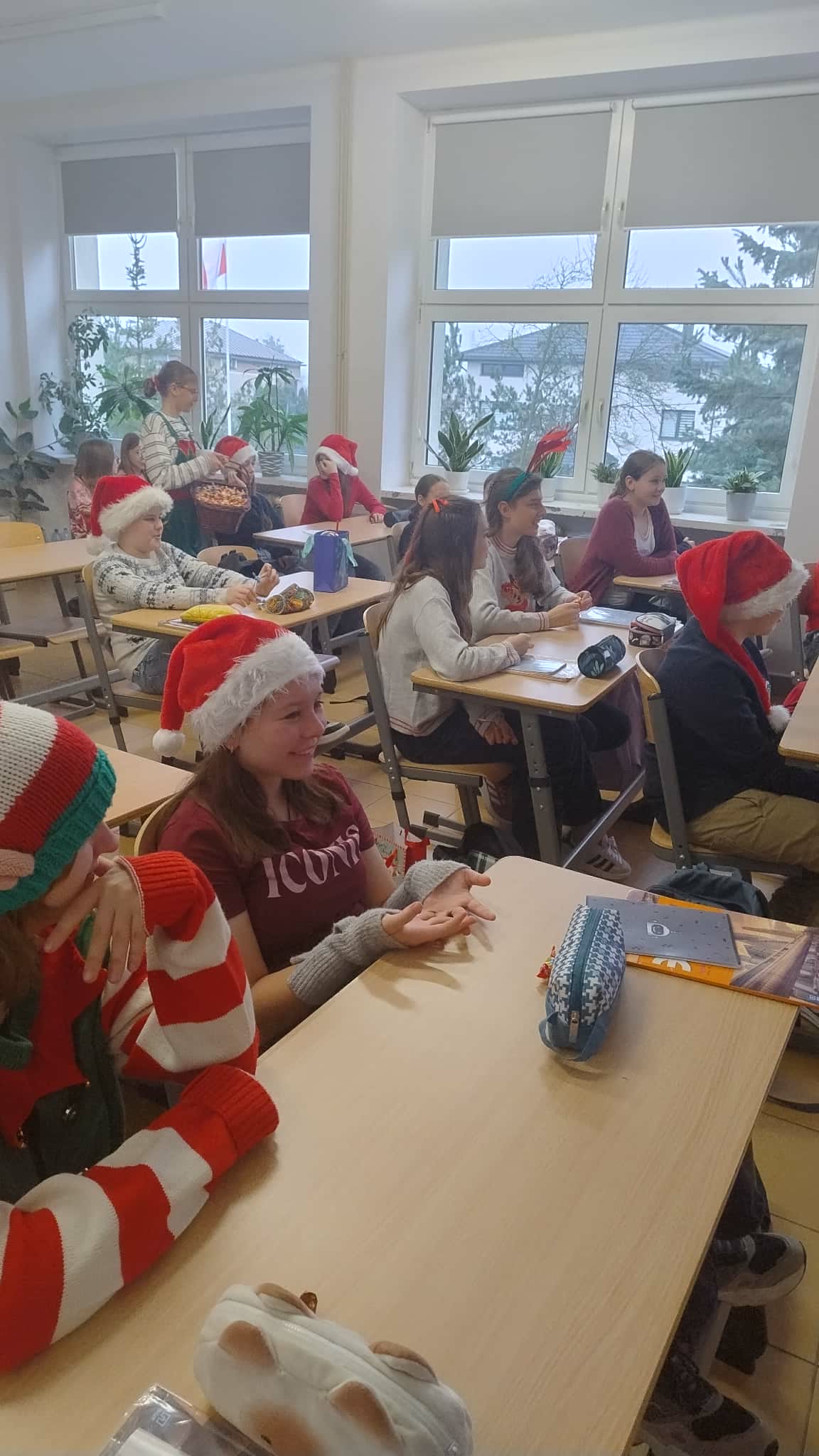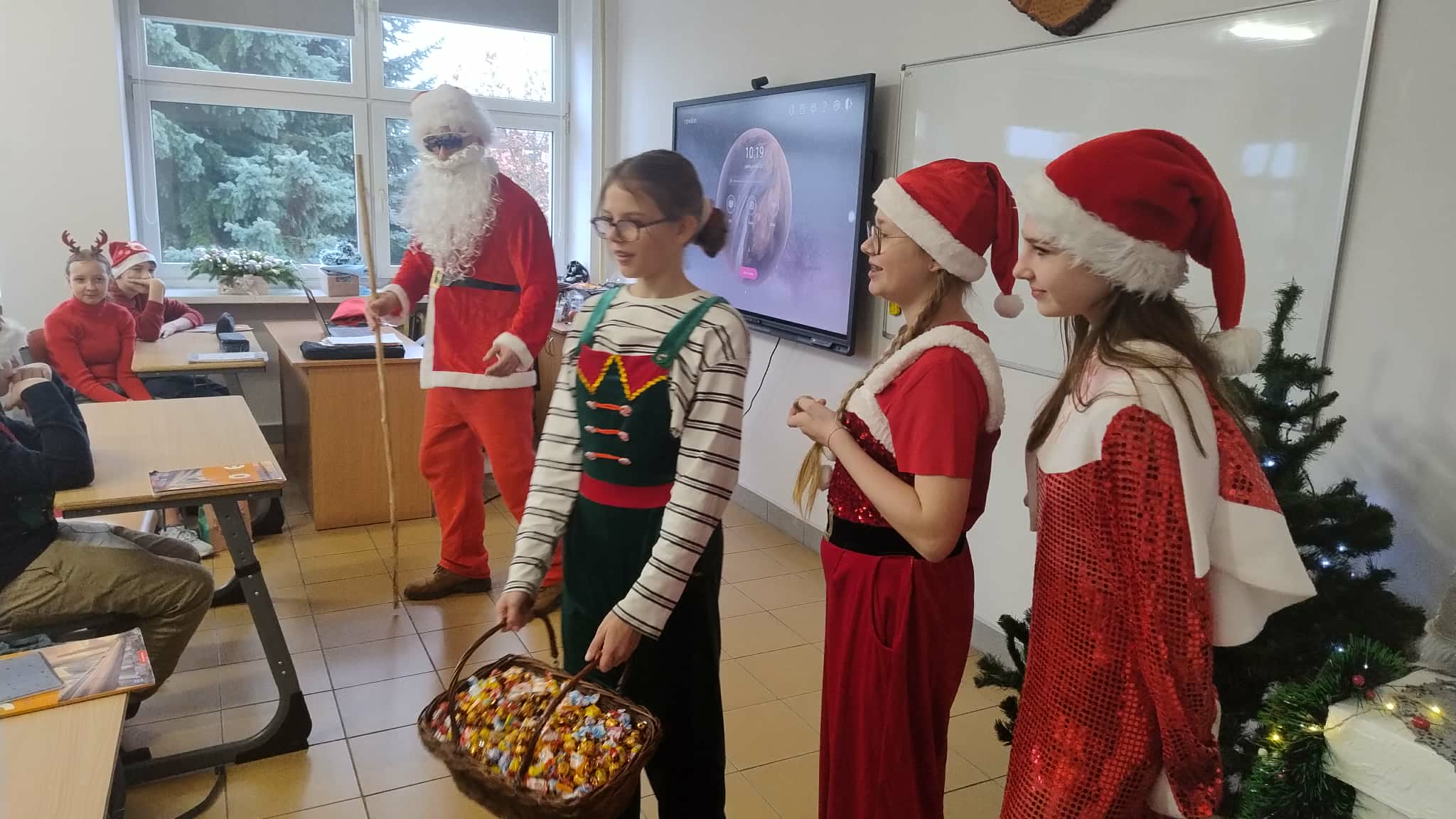 5 grudnia wprowadziliśmy do naszej szkoły świąteczną atmosferę. Pomogli nam w tym wszyscy uczniowie i nauczyciele, którzy ubrali się w świąteczne swetry, bluzki, założyli czapki mikołajowe czy też inne bożonarodzeniowe atrybuty.