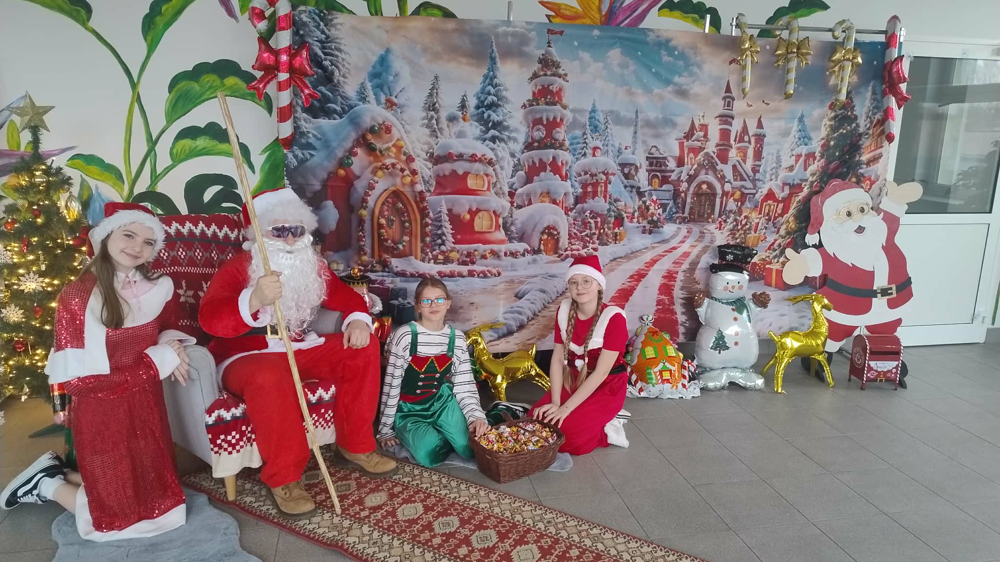 Odwiedził nas też Święty Mikołaj ze swoimi elfami i częstował wszystkie grzeczne, małe i duże dzieci cukierkami.
