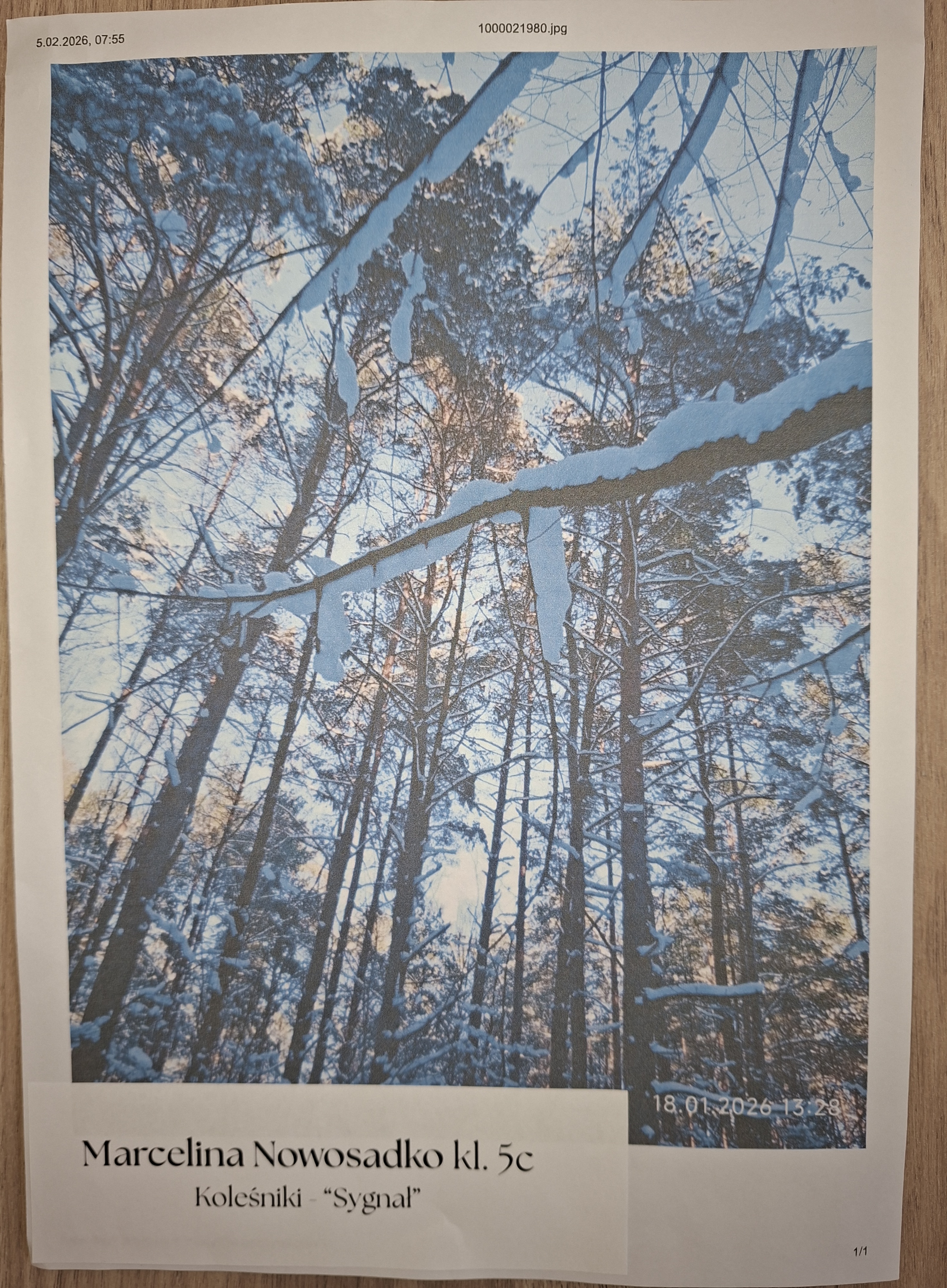 Za udział w świetlicowym konkursie fototograficznym "Moja miejscowość zimą" nagrody rzeczowe otrzymali następujący uczniowie: