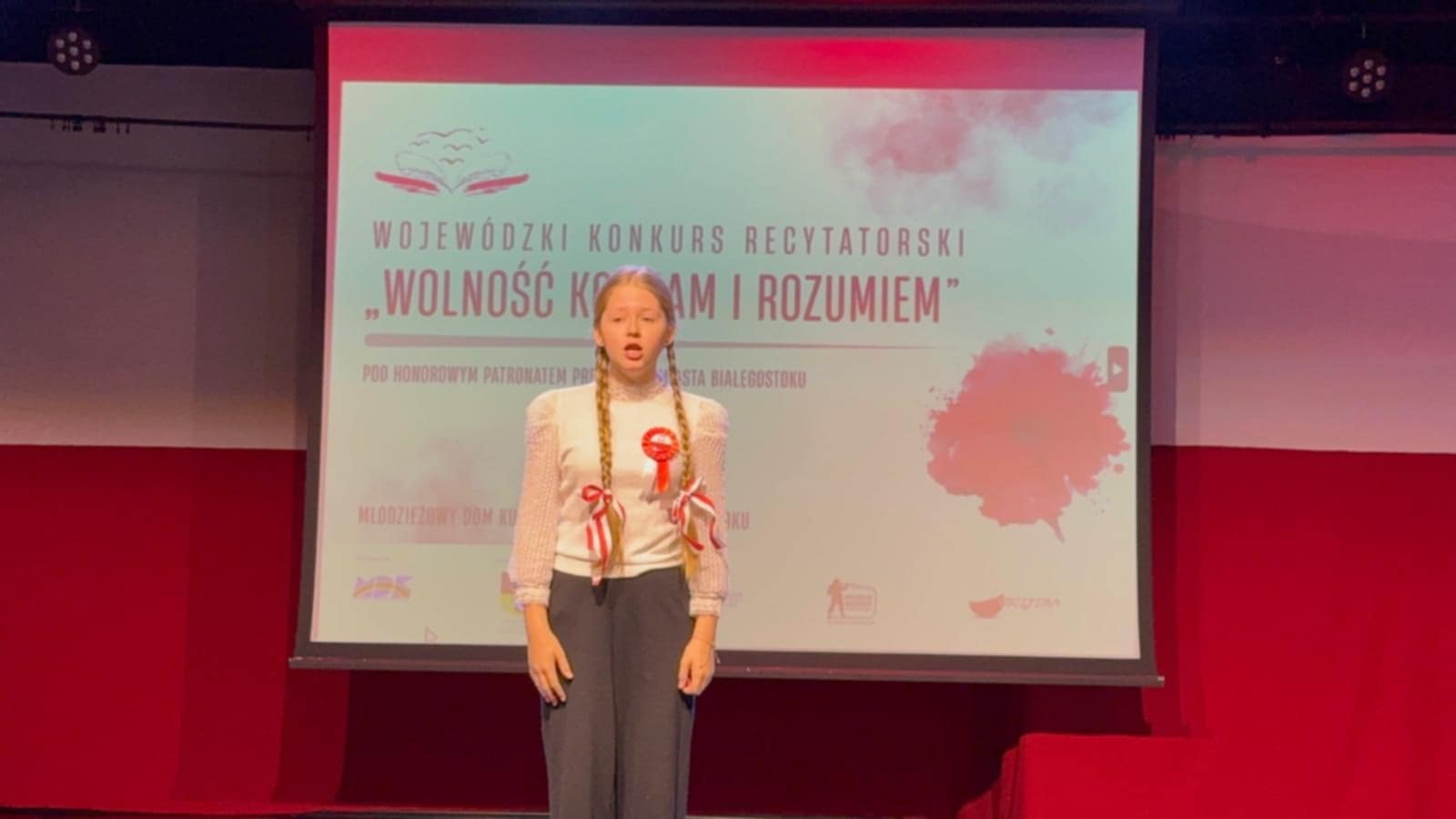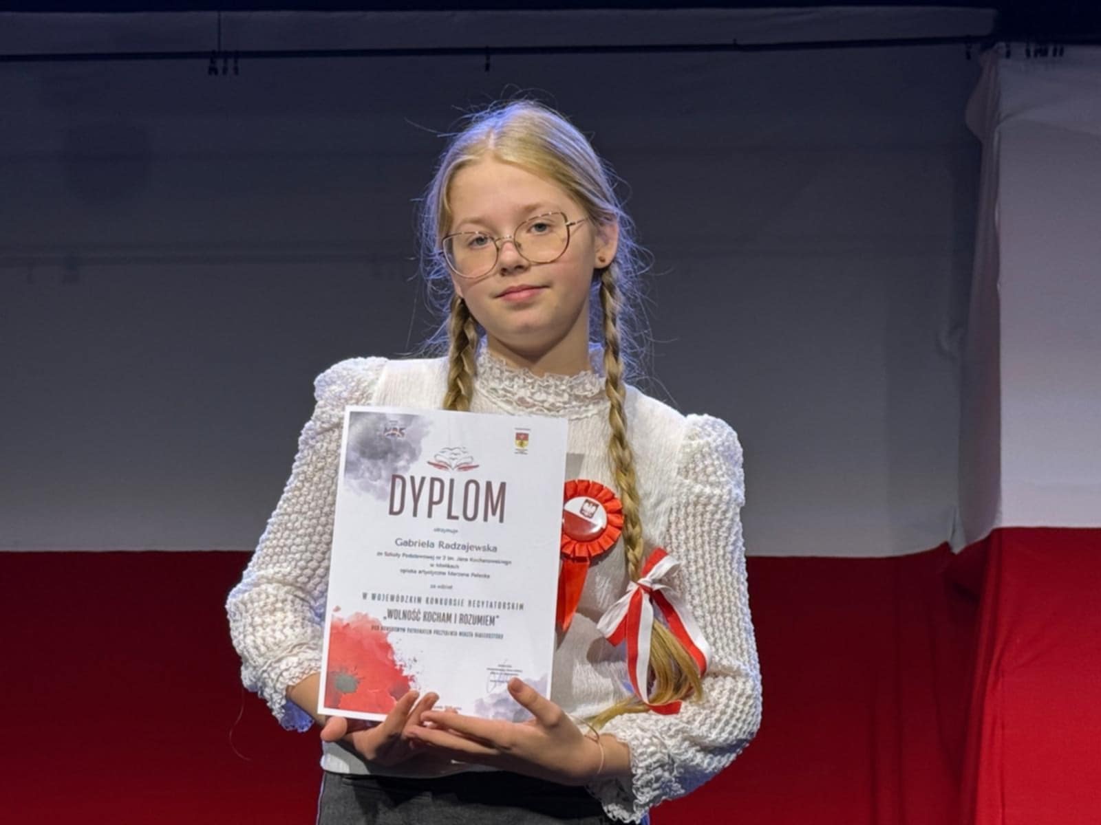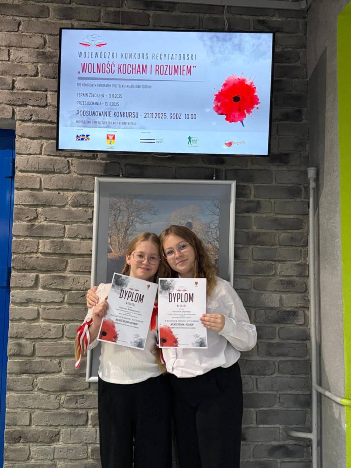 Równie imponujący sukces przyniosło uczestnictwo naszych uczennic w Wojewódzkim Konkursie Recytatorskim pod hasłem „Wolność kocham i rozumiem”. Doskonała interpretacja utworów poetyckich, kultura słowa oraz piękna, świadoma recytacja Gabrieli Radzajewskiej i Karoliny Sadorskiej zaowocowały nagrodami i uznaniem jury oraz publiczności.
