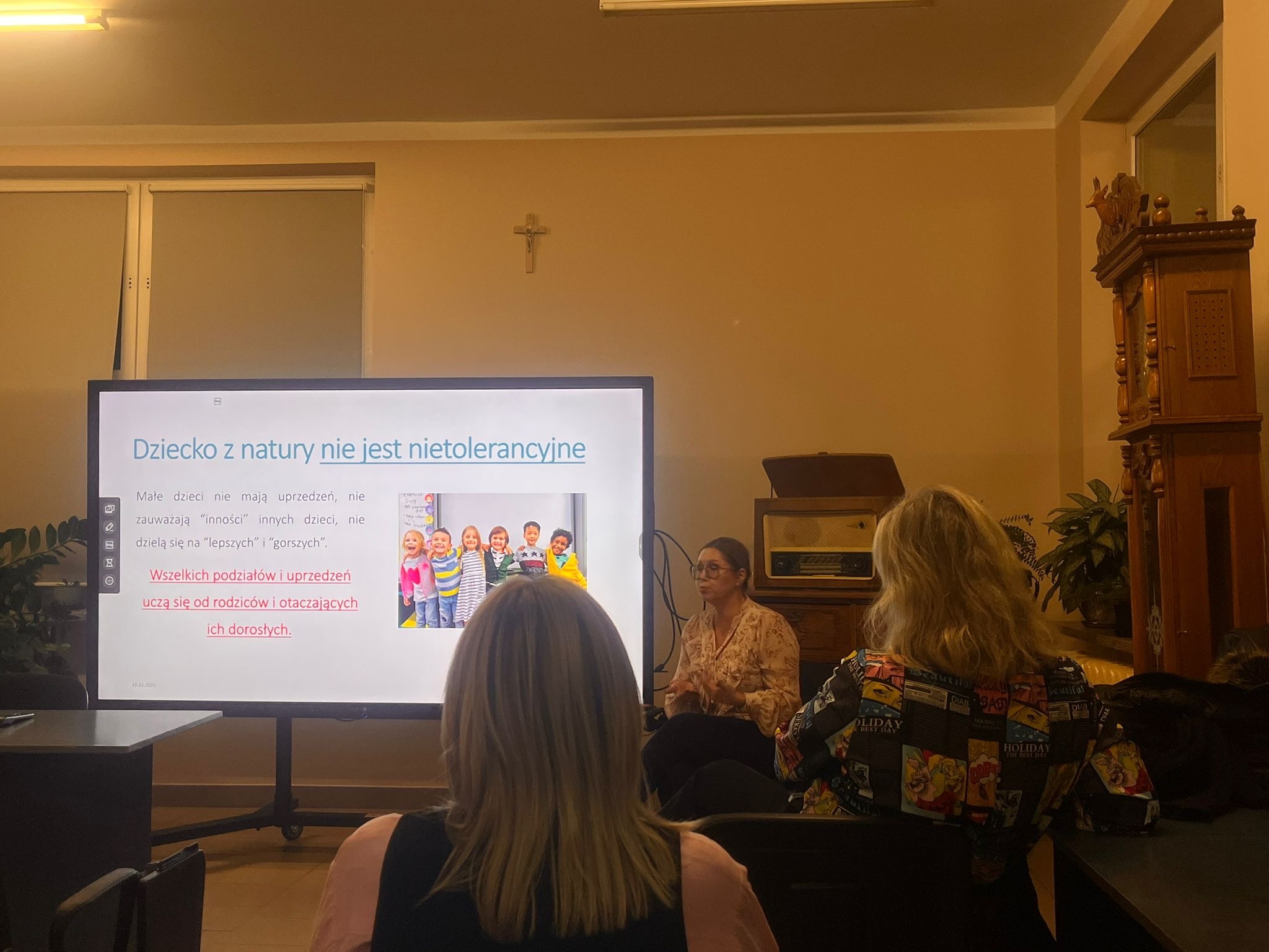 Klasy VII obejrzały film „Cudowny chłopak”, uczący akceptacji i przyjaźni. Rodzice natomiast uczestniczyli w wykładzie „Jak uczyć dzieci tolerancji i szacunku”, który poprowadziła pani pedagog Anna Świderek z Poradni Psychologiczno-Pedagogicznej w Mońkach.