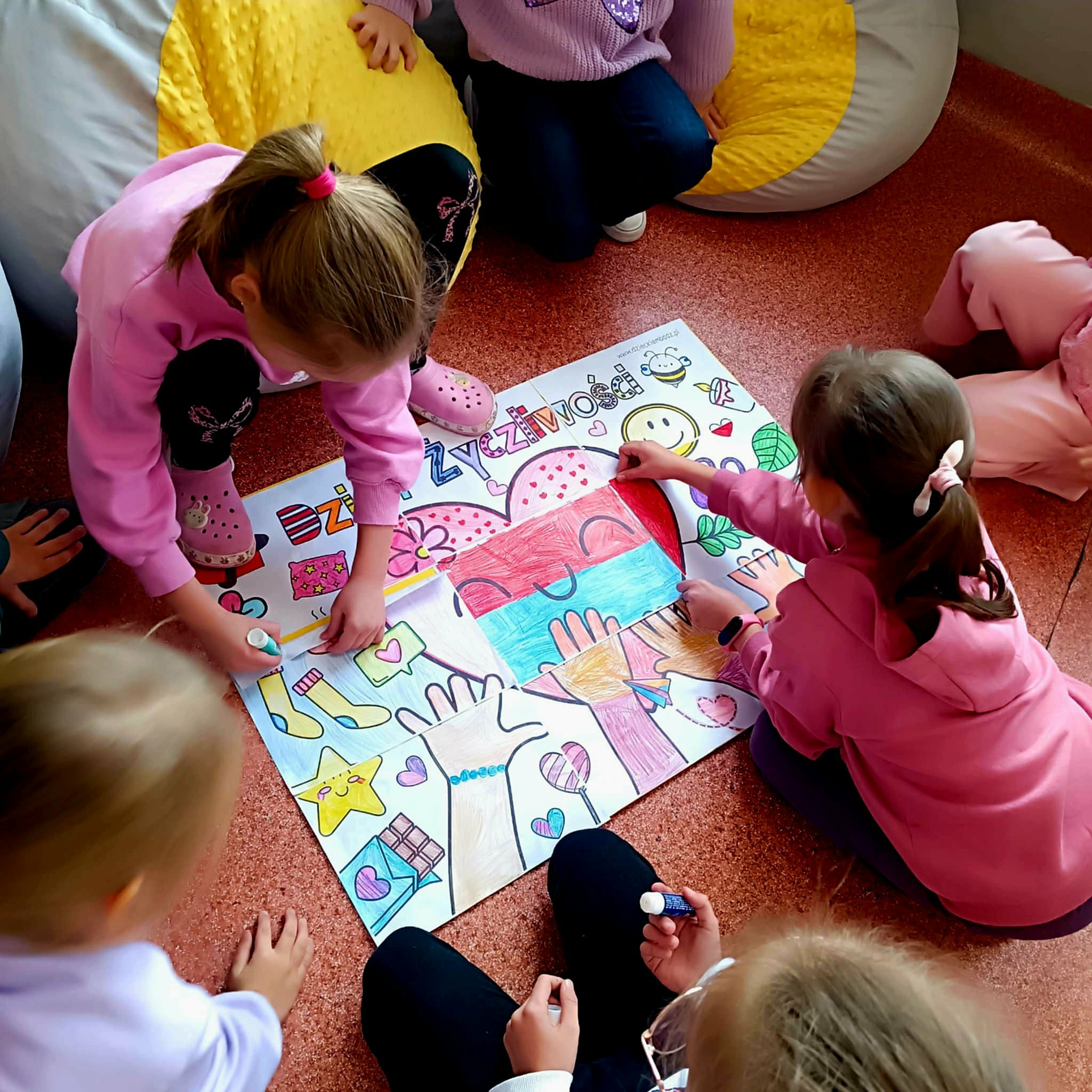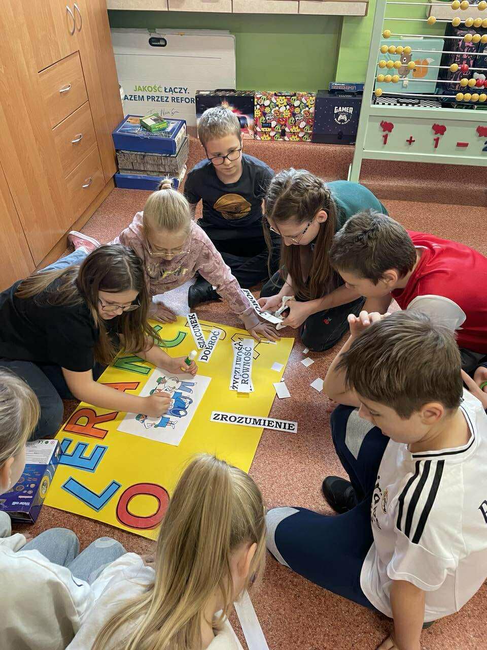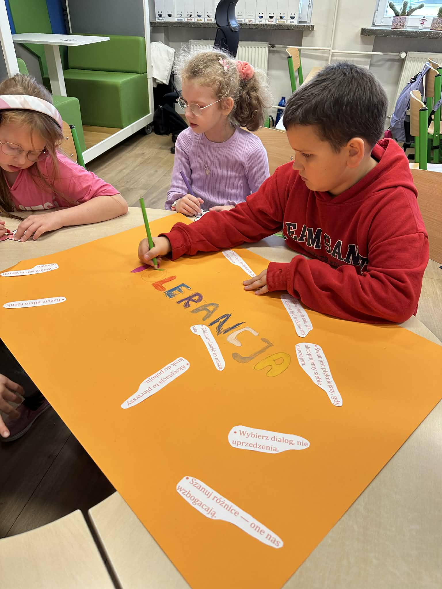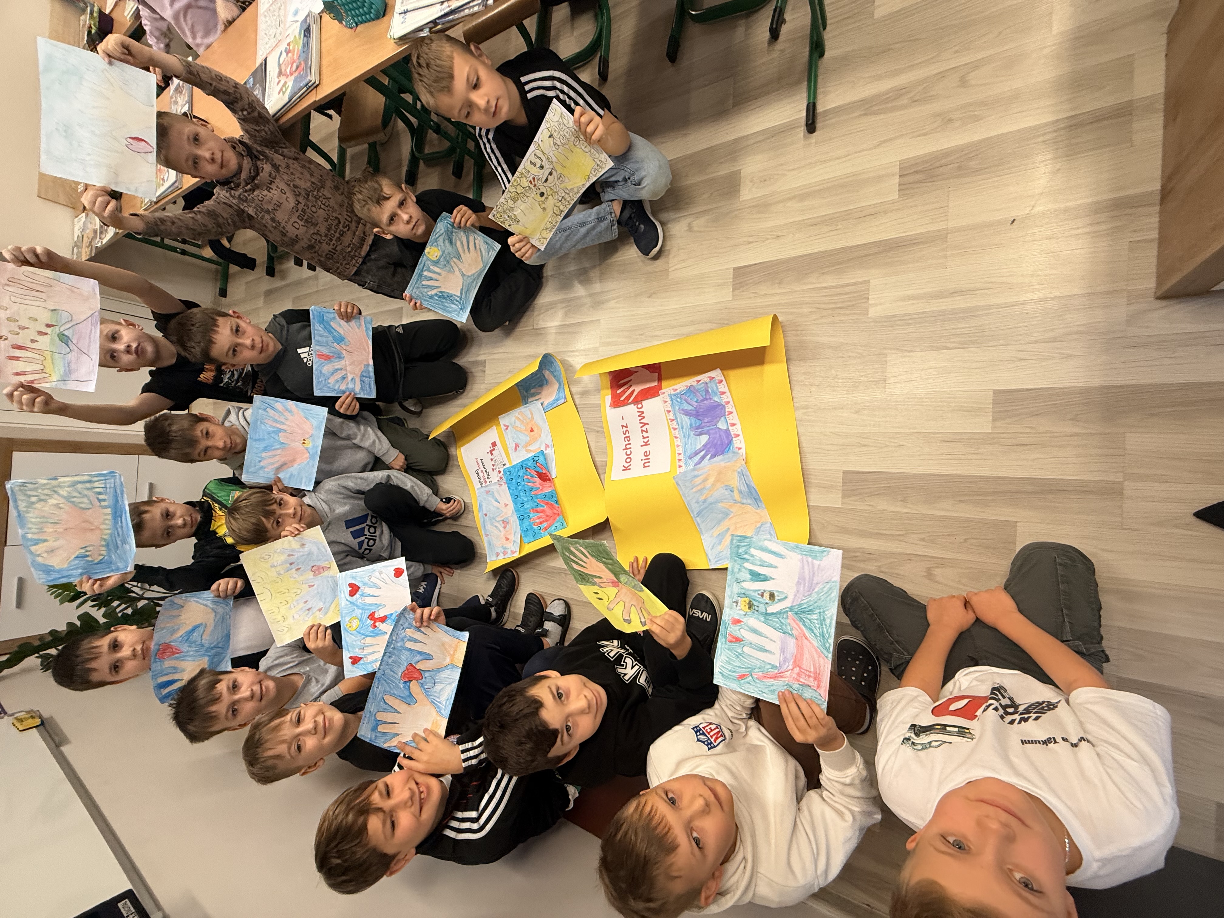 Na koniec dzieci, pod opieką wychowawców i nauczycieli świetlicy, przygotowały plakaty o tolerancji i życzliwości. Powstały prace pełne ważnych myśli i kolorów – dokładnie takie, jakich można się spodziewać po dzieciach, które naprawdę rozumieją, o czym mówiliśmy.