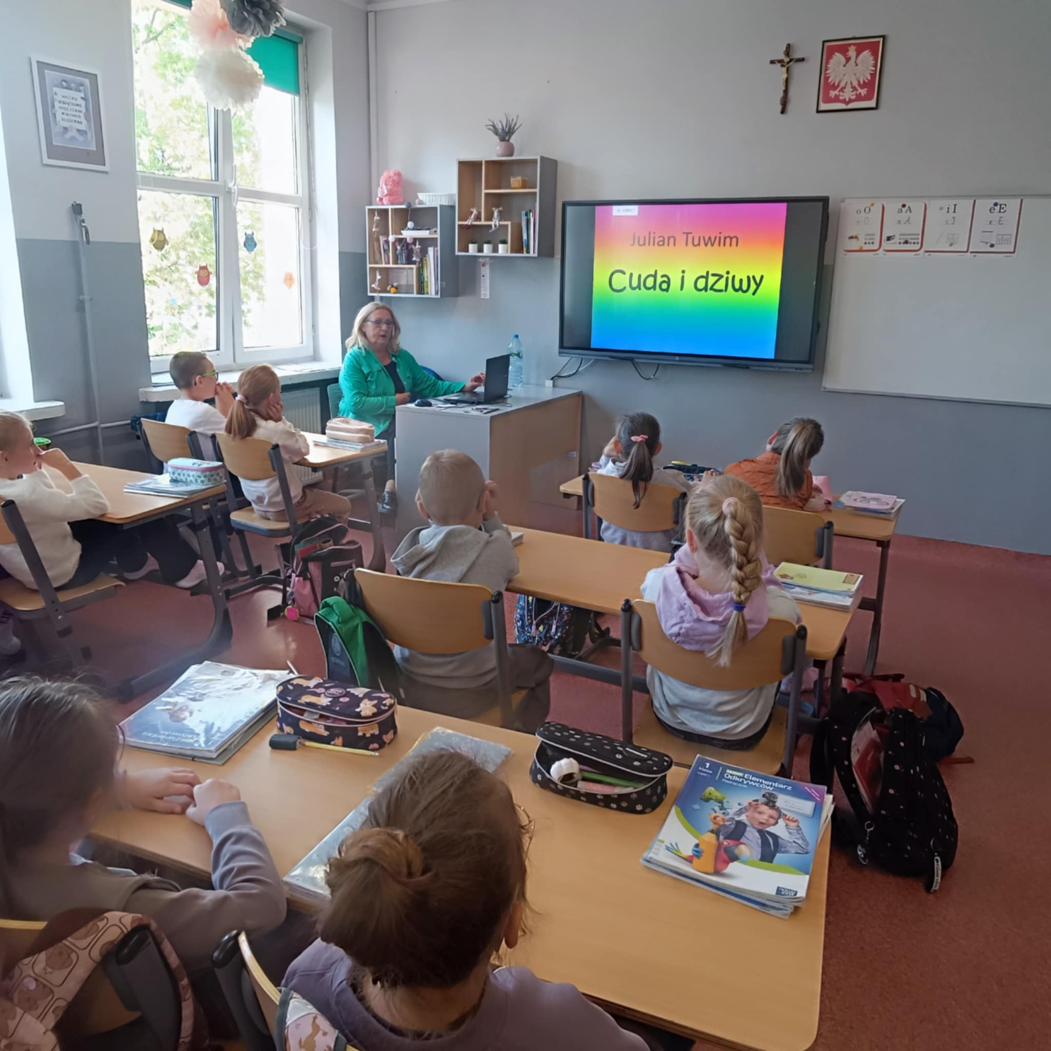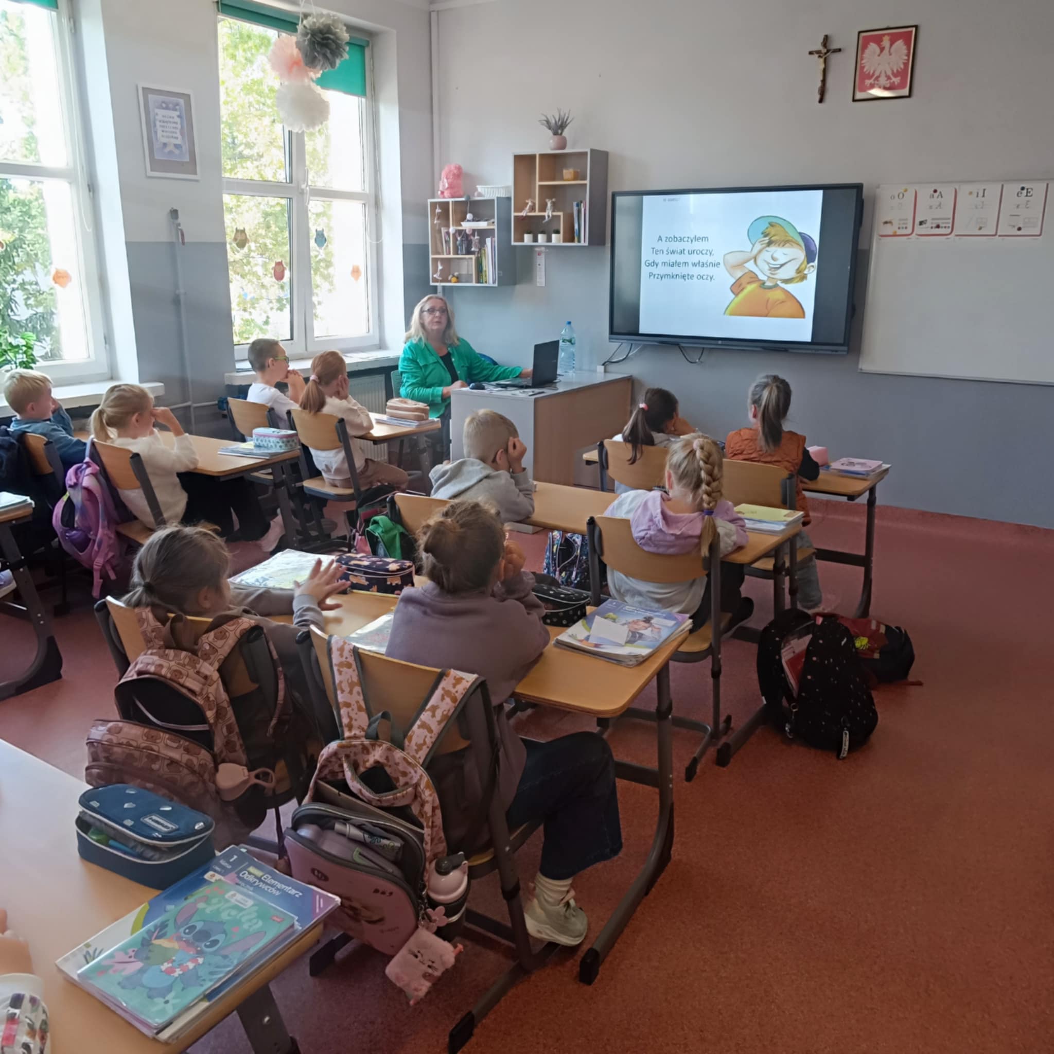 2 października 2025 roku w klasie 1b naszej szkoły odbyły się zajęcia pod nazwą „Wiersze znamy , bo je czytamy” prowadzone przez panią bibliotekarkę. Ich celem było zachęcenie dzieci do sięgania po wierszowane książeczki, które pobudzają wyobraźnię, skłaniają do refleksji oraz pozwalają doświadczyć emocji.
