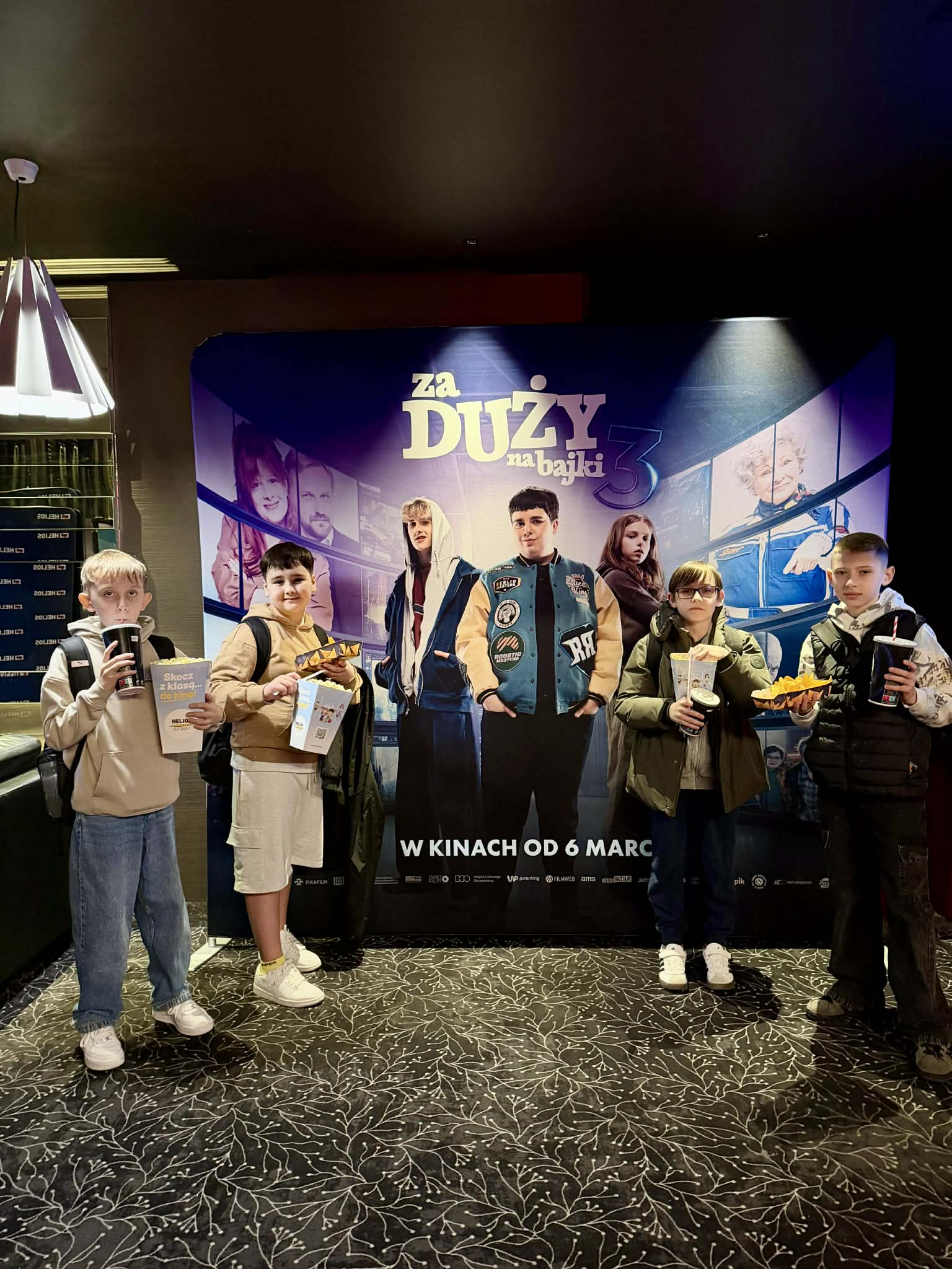 Dziś uczniowie klas 4b i 4c spędzili naprawdę wyjątkowy dzień. Najpierw odwiedzili Strefę Wysokich Lotów, gdzie odbyła się nietypowa lekcja WF-u Zamiast szkolnej sali gimnastycznej były trampoliny, mnóstwo ruchu, śmiechu i świetnej zabawy! Energia naszych uczniów sięgała dziś naprawdę… wysokich lotów. Kolejnym punktem wycieczki było kino Helios, gdzie obejrzeli film „Za duży na bajki 3”. Zanim jednak rozpoczął się seans, uczniowie wzięli udział w bardzo ciekawej prelekcji dotyczącej hejtu w internecie. Była to ważna i skłaniająca do refleksji rozmowa o tym, jak nasze słowa mogą wpływać na innych.