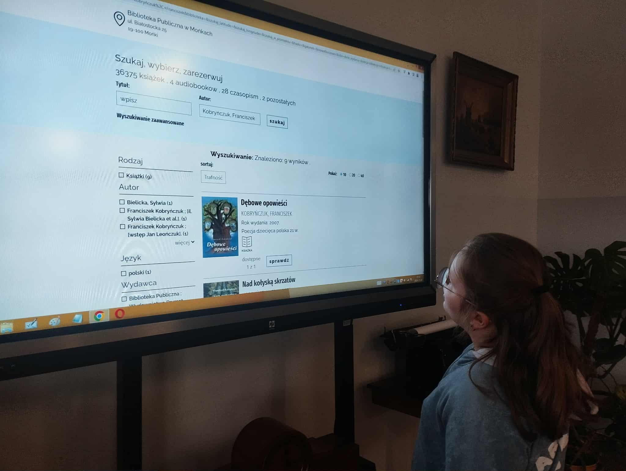 W drugiej części lekcji dzieci ćwiczyły korzystanie z katalogu MAK, do którego dostęp, na swojej stronie www, umożliwia Biblioteka Publiczna w Mońkach.