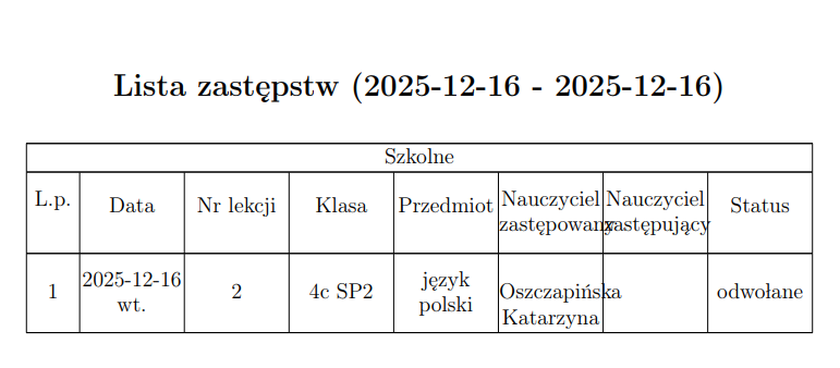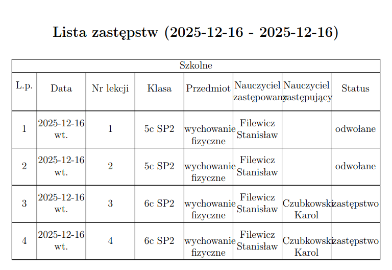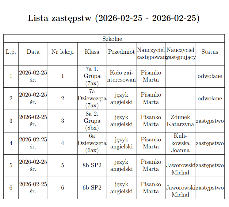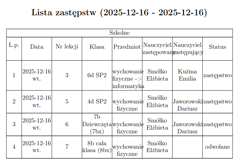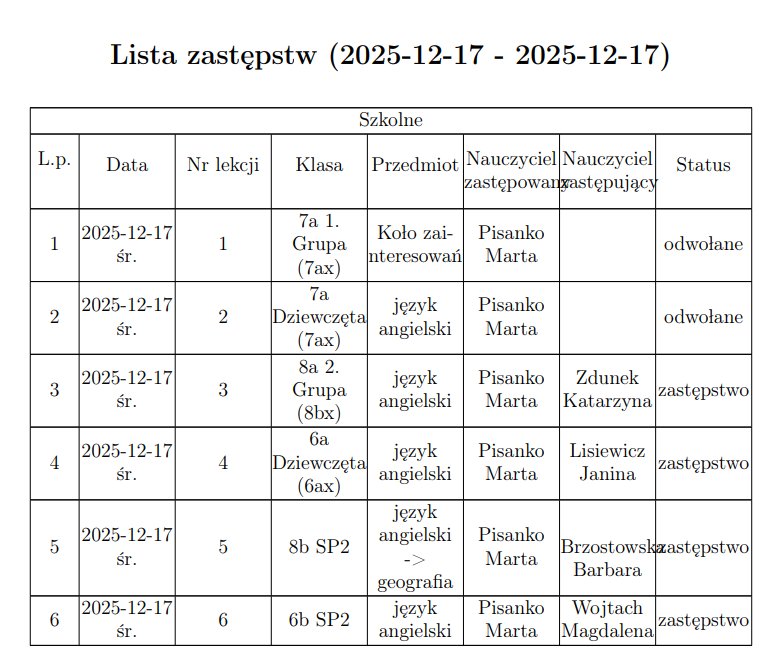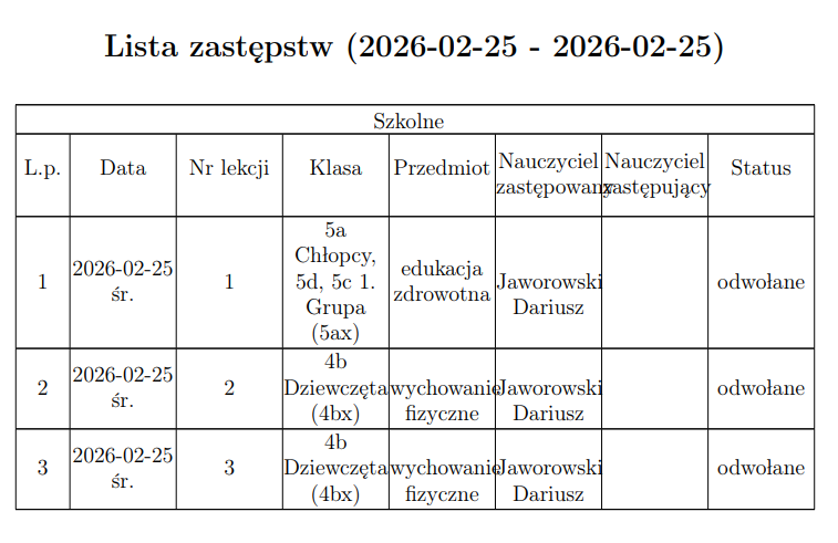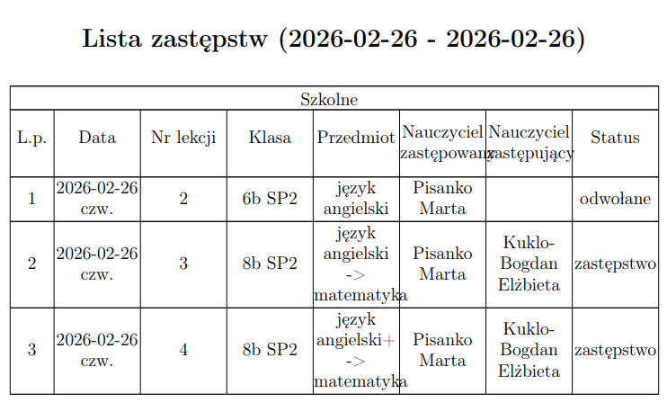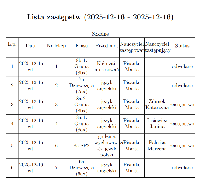 Zastępstwa ...